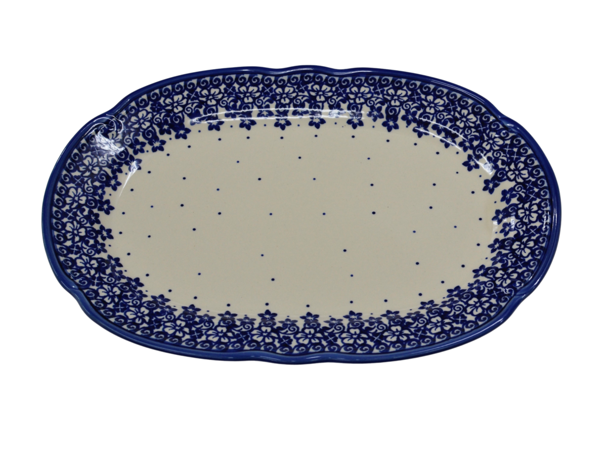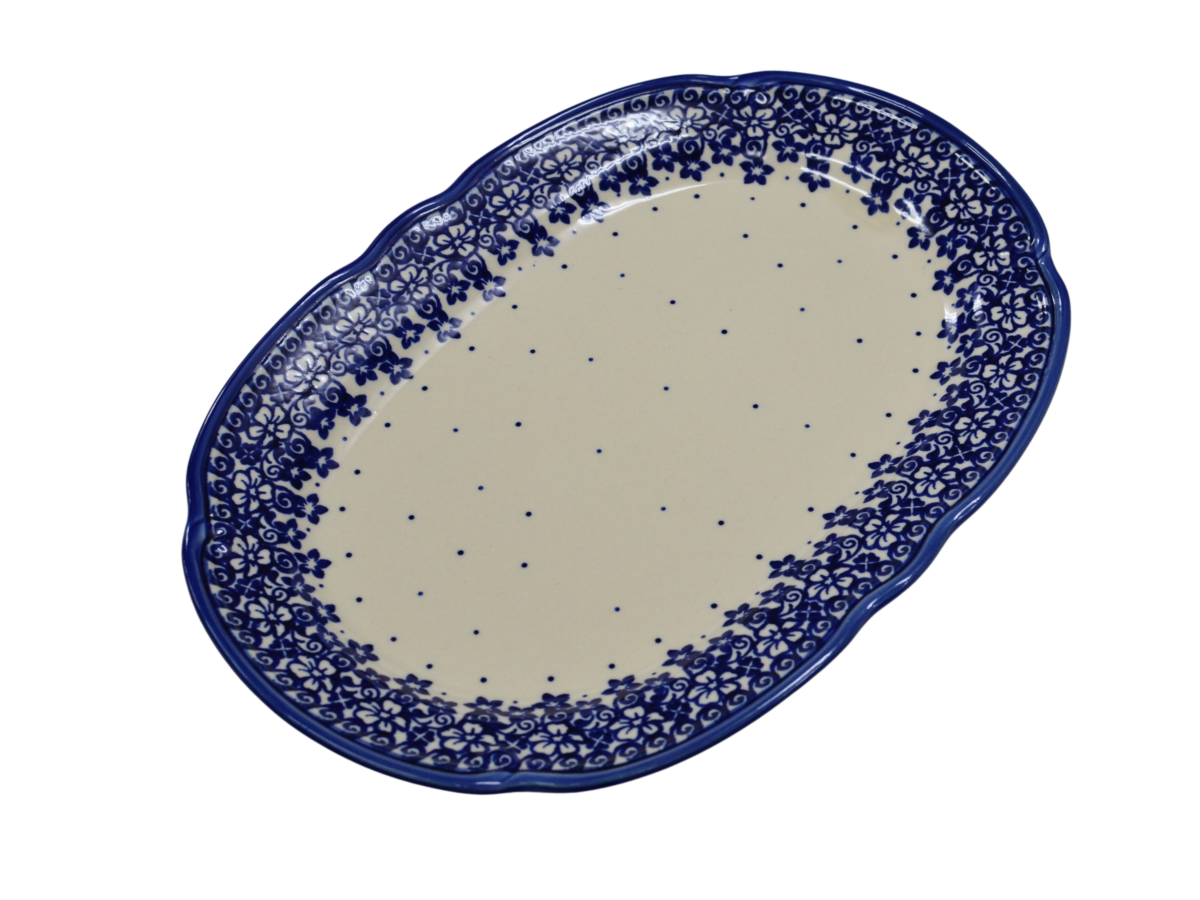 Oryginalny produkt ceramiki bolesławieckiej - półmisek owalny z reliefem, ręcznie malowany w rodzinnej fabryce oryginalnej ceramiki bolesławieckiej, ANDY CERAMIKA.
