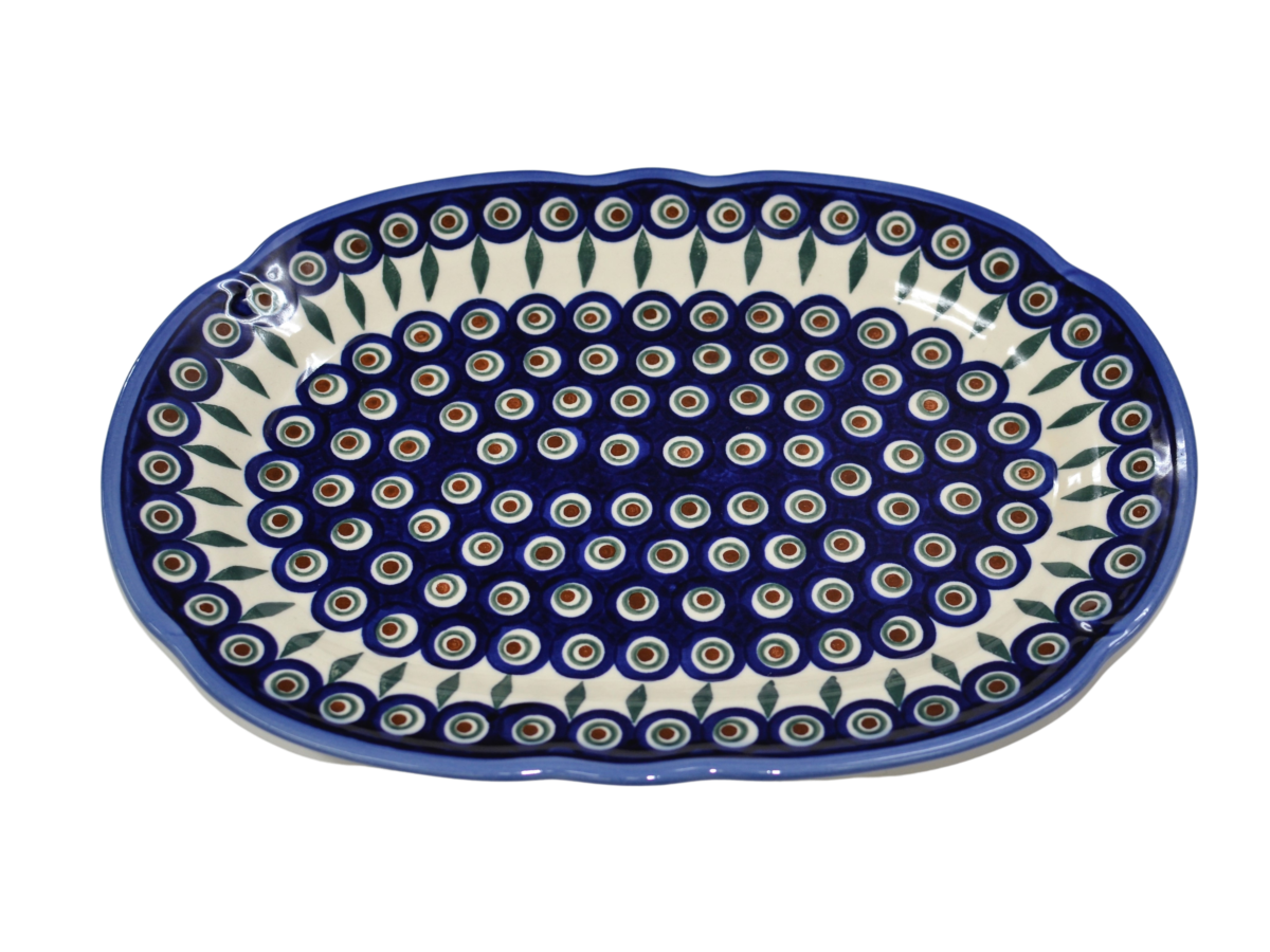 Oryginalny produkt ceramiki bolesławieckiej - półmisek owalny z reliefem, ręcznie malowany w rodzinnej fabryce oryginalnej ceramiki bolesławieckiej, ANDY CERAMIKA.