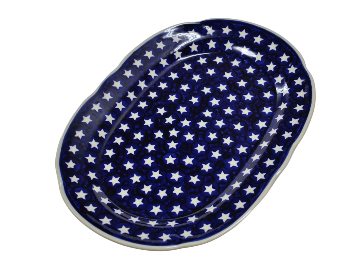Oryginalny produkt ceramiki bolesławieckiej - półmisek owalny z reliefem, ręcznie malowany w rodzinnej fabryce oryginalnej ceramiki bolesławieckiej, ANDY CERAMIKA.