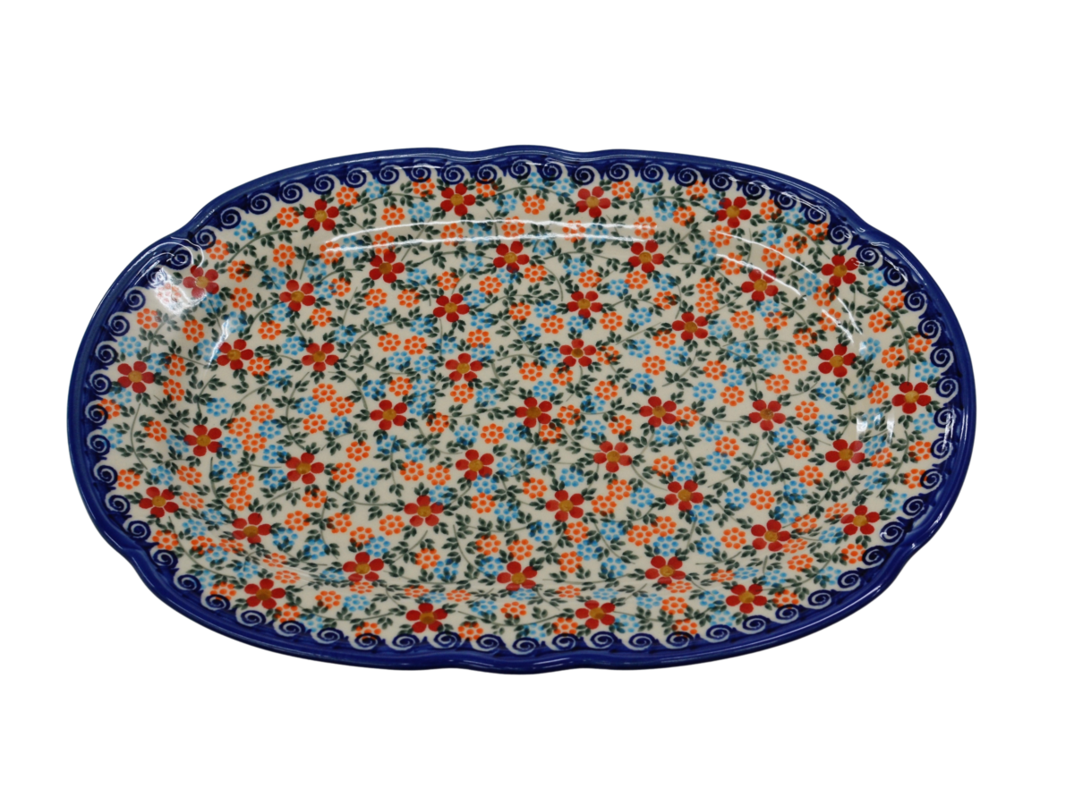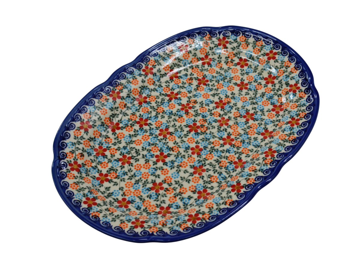 Oryginalny produkt ceramiki bolesławieckiej - półmisek owalny z reliefem, ręcznie malowany w rodzinnej fabryce oryginalnej ceramiki bolesławieckiej, ANDY CERAMIKA.