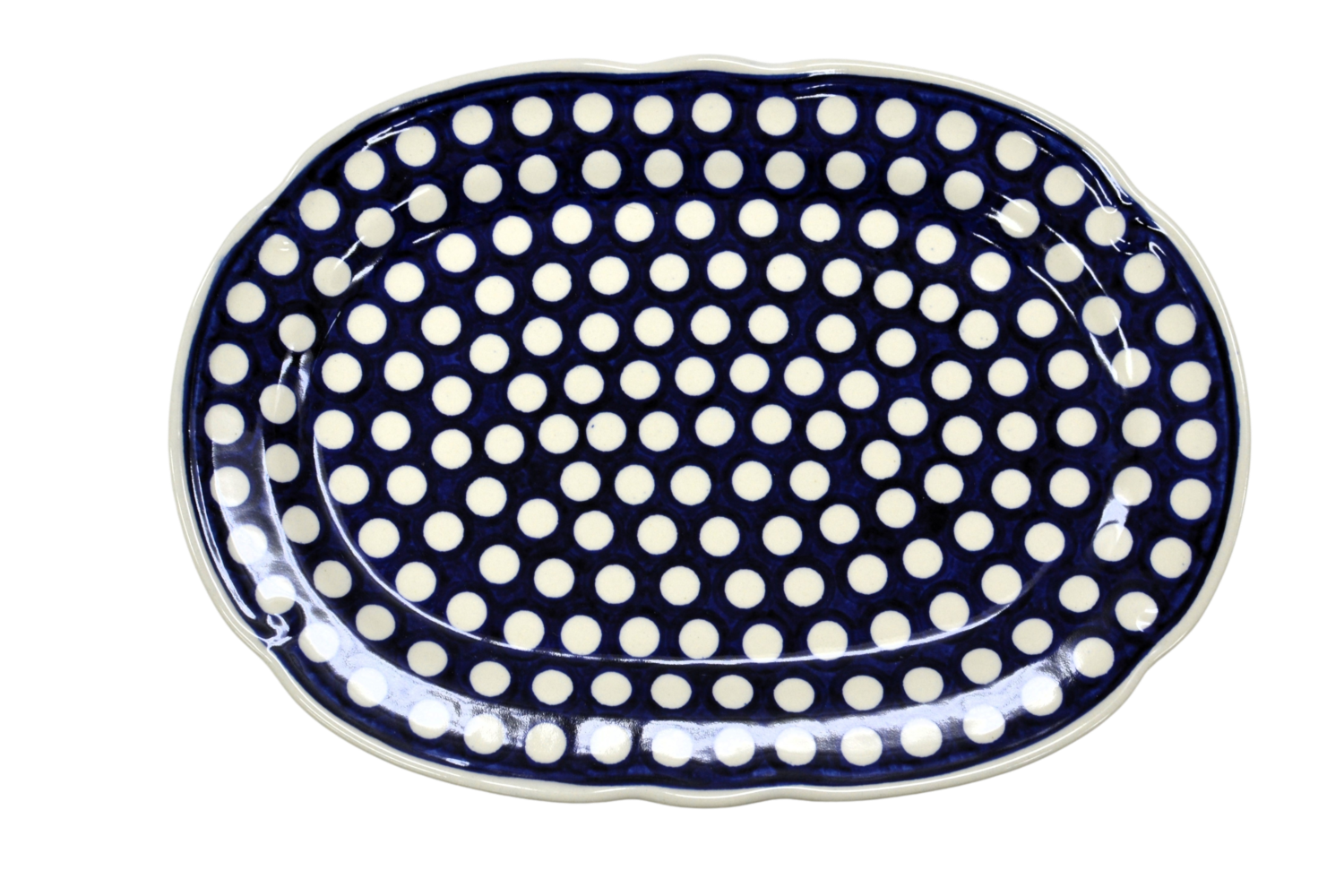 Oryginalny produkt ceramiki bolesławieckiej - półmisek owalny z reliefem, ręcznie malowany w rodzinnej fabryce oryginalnej ceramiki bolesławieckiej, ANDY CERAMIKA.