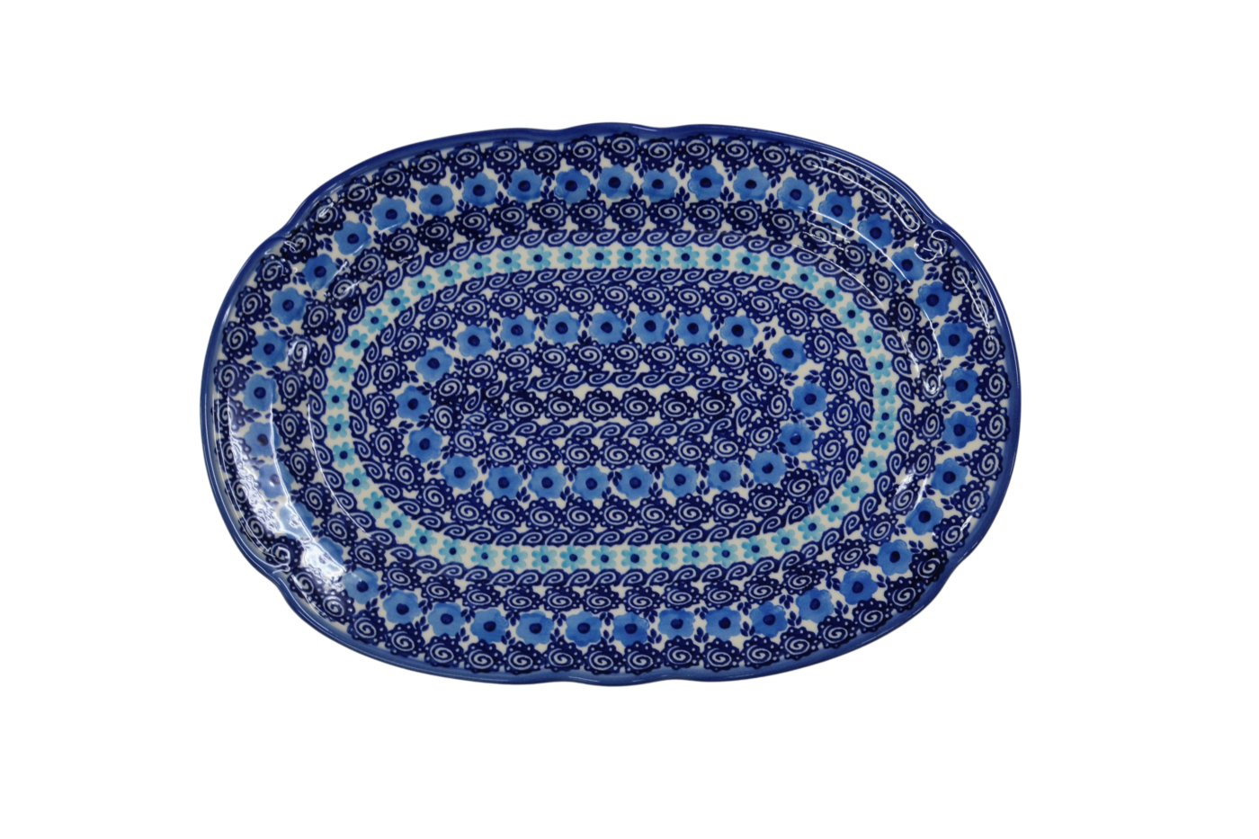 Oryginalny produkt ceramiki bolesławieckiej - półmisek owalny z reliefem, ręcznie malowany w rodzinnej fabryce oryginalnej ceramiki bolesławieckiej, ANDY CERAMIKA.