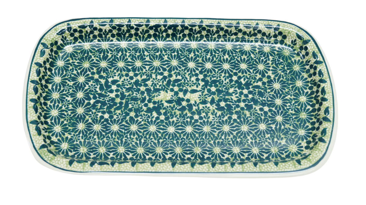 Półmisek, prostokątna taca, który zdecydowanie sposób podania posiłku wzbogaca. Dużo rewelacyjnych naczyń użytkowej produkujemy, z nich jemy i przy tym czasami rymujemy, no i pięknie malujemy!