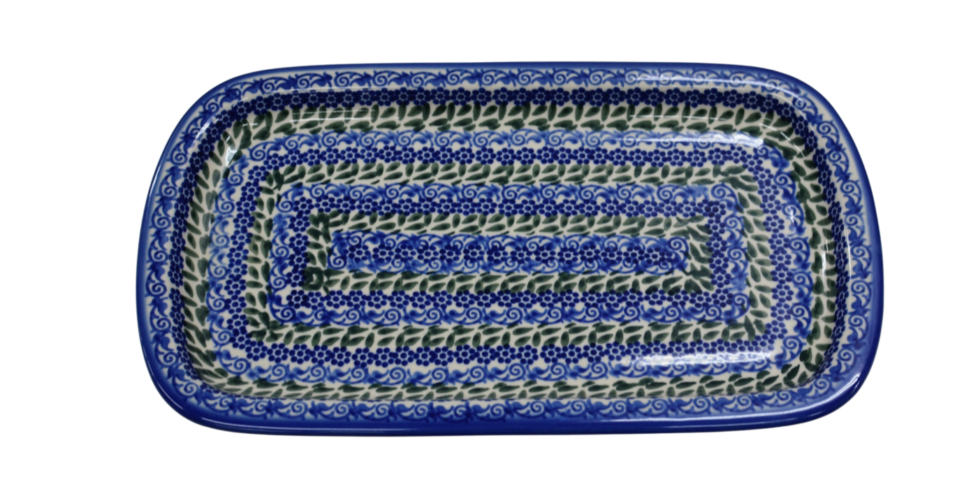 Półmisek, prostokątna taca, który zdecydowanie sposób podania posiłku wzbogaca. Dużo rewelacyjnych naczyń użytkowej produkujemy, z nich jemy i przy tym czasami rymujemy, no i pięknie malujemy!