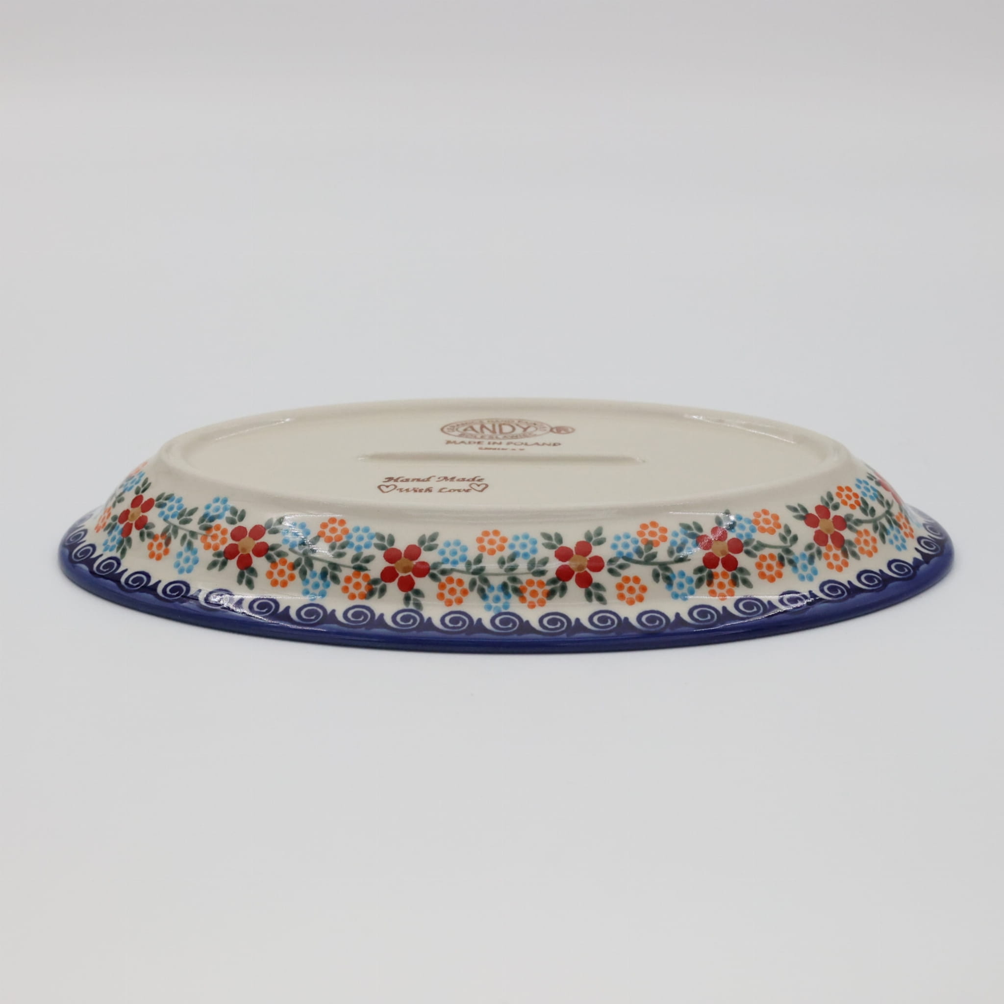 Półmisek salaterka na przystawki AMADEUS o 27 cm długości, ręcznie wykonany w bolesławieckiej manufakturze ceramiki artystycznej. Idealne naczynie ceramiczne do podawania potraw obiadowych, przystawek a nawet jako pojedyncze naczynie do podania obiadu (jako talerz).