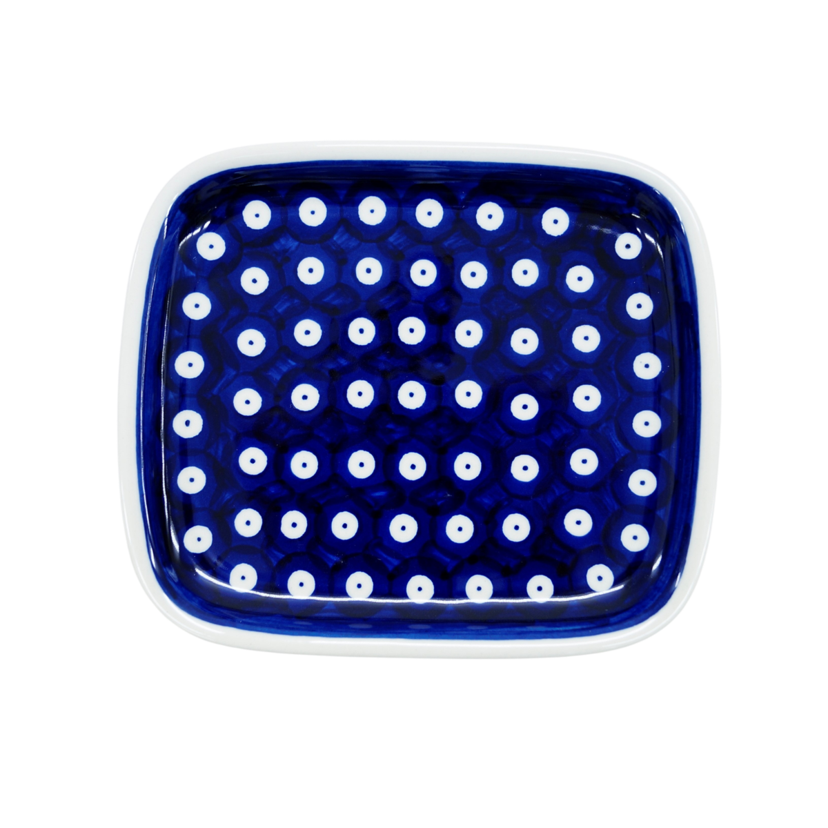Oryginalny produkt ceramiki bolesławieckiej ręcznie wykonanej w tradycyjny sposób w manufakturze ceramiki artystycznej, ANDY CERAMIKA - ceramiczny półmisek - talerz prostokątny, ręcznie dekorowany podszkliwnie, naczynie do serwowania i przechowywania.