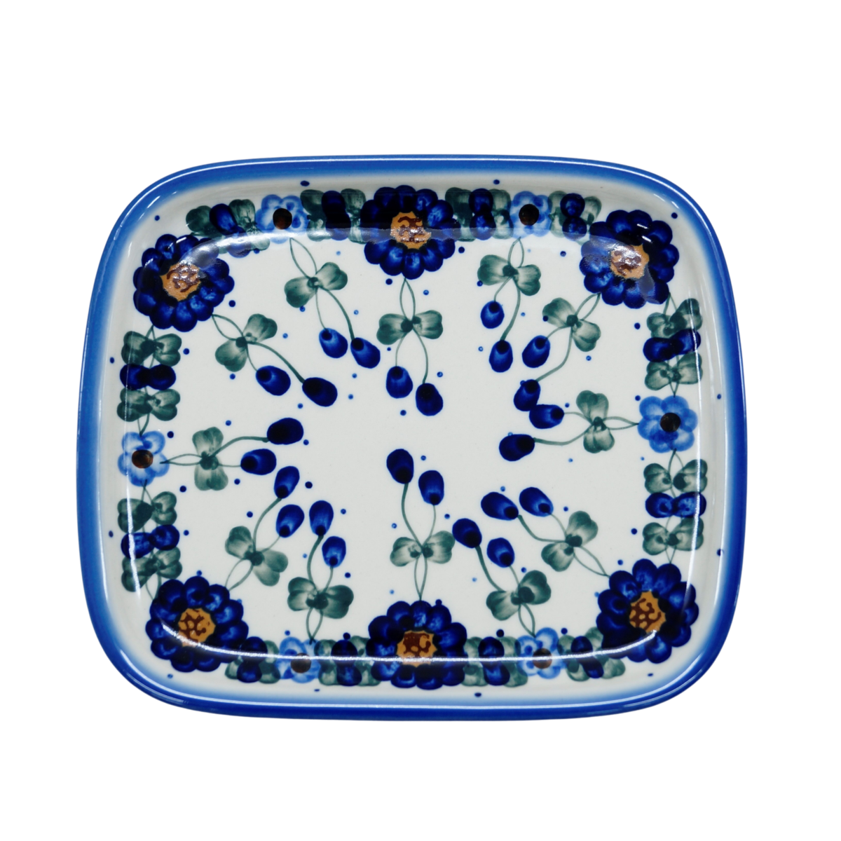 Oryginalny produkt ceramiki bolesławieckiej ręcznie wykonanej w tradycyjny sposób w manufakturze ceramiki artystycznej, ANDY CERAMIKA - ceramiczny półmisek - talerz prostokątny, ręcznie dekorowany podszkliwnie, naczynie do serwowania i przechowywania.