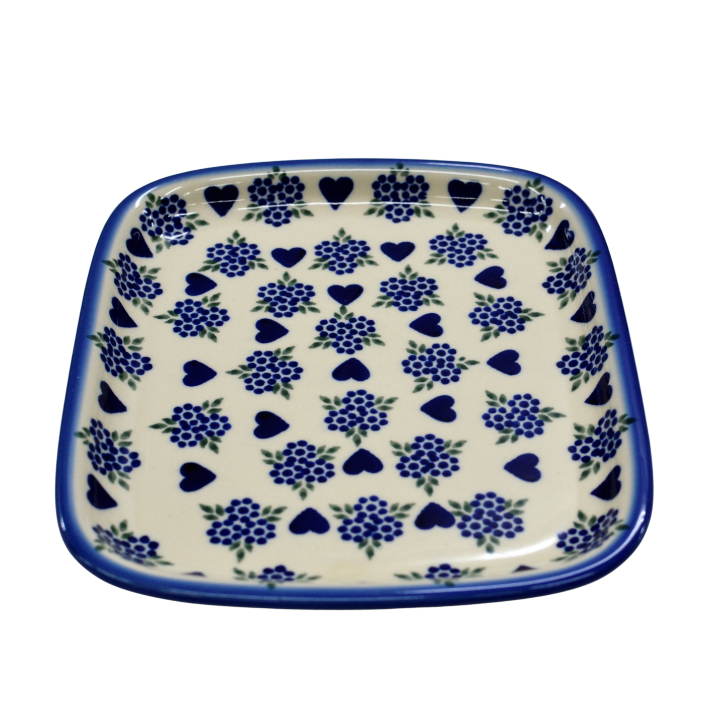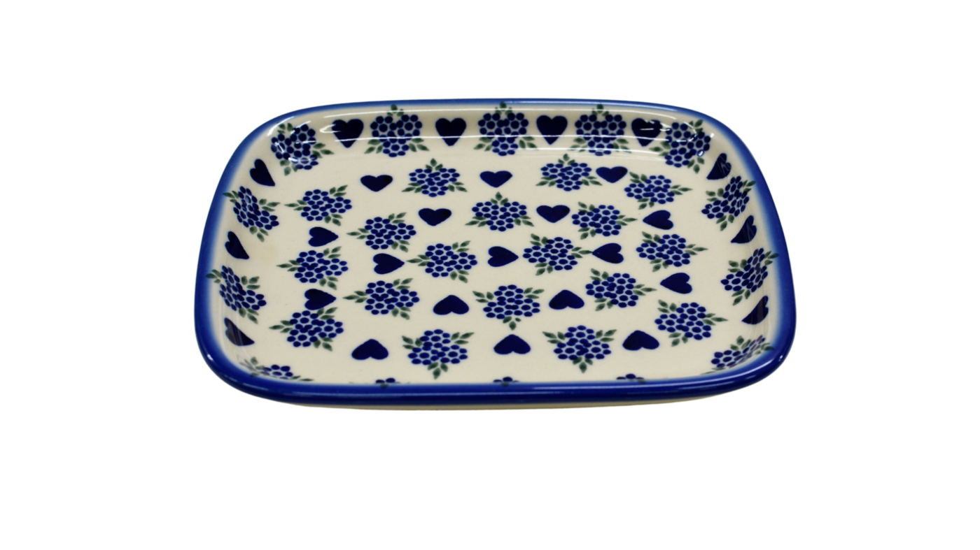 Oryginalny produkt ceramiki bolesławieckiej ręcznie wykonanej w tradycyjny sposób w manufakturze ceramiki artystycznej, ANDY CERAMIKA - ceramiczny półmisek - talerz prostokątny, ręcznie dekorowany podszkliwnie, naczynie do serwowania i przechowywania.
