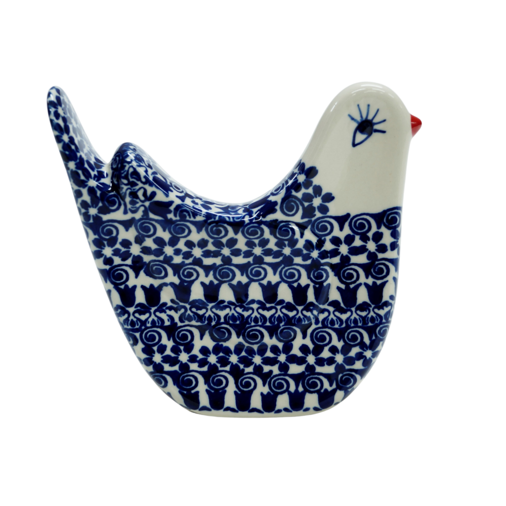 Prosta, minimalistyczna forma i oryginalny kształt z pewnością będzie pasował do każdego nowoczesnego wnętrza jak i domu tradycyjnie zdobionego polskimi wyrobami i rękodziełem. W naszej ofercie z pewnością odnajdziesz inne ptaszki i ptaki oraz zwierzątka ceramiczne.