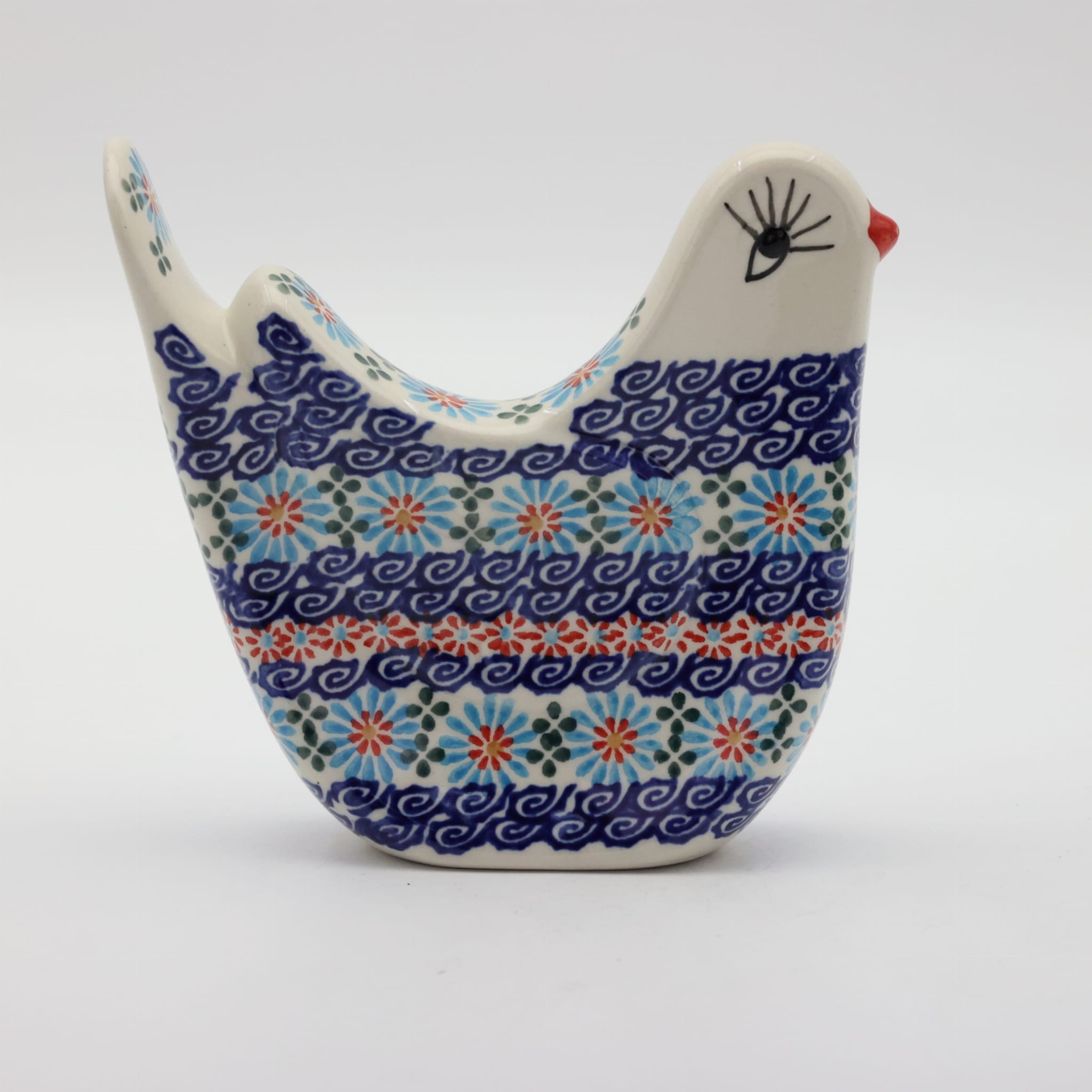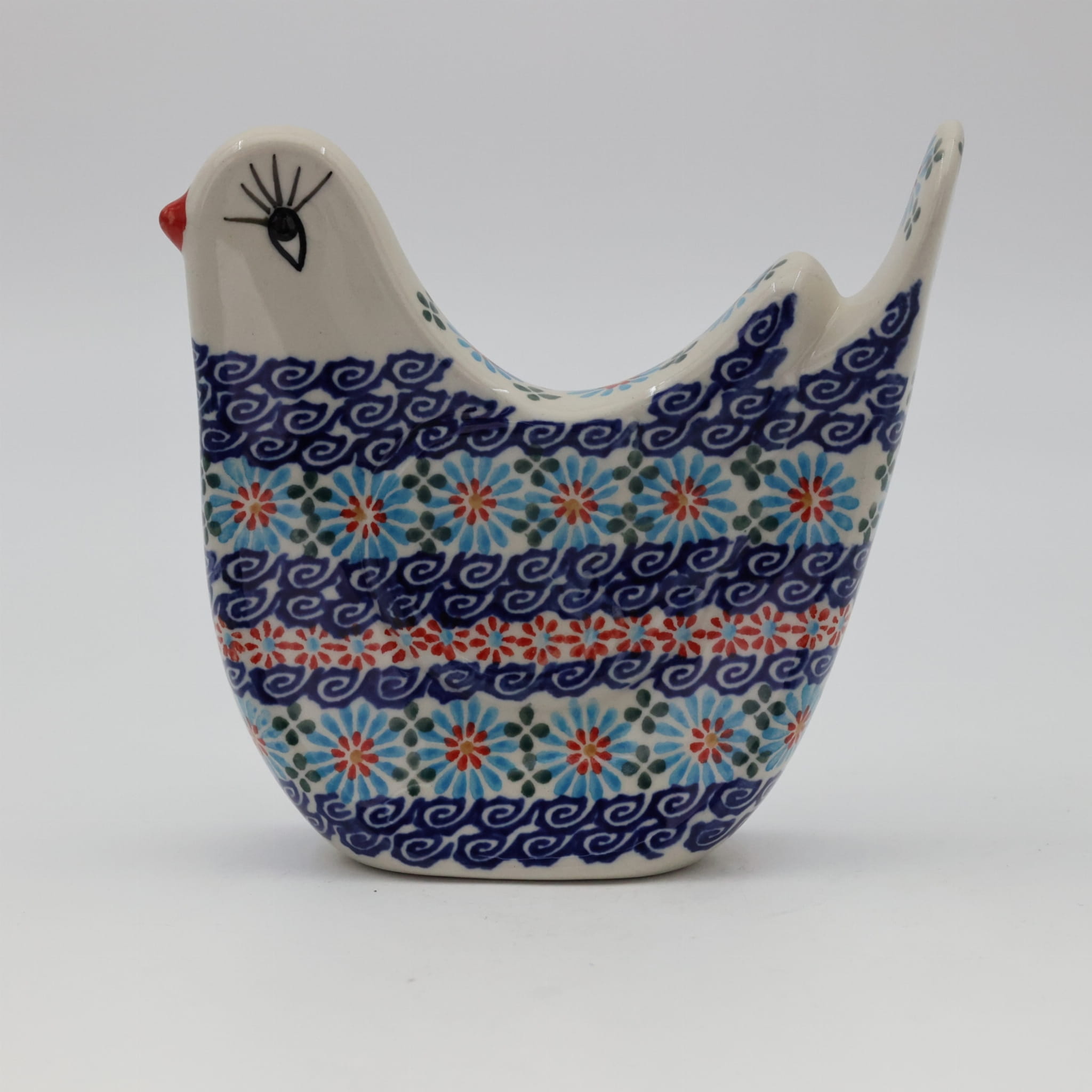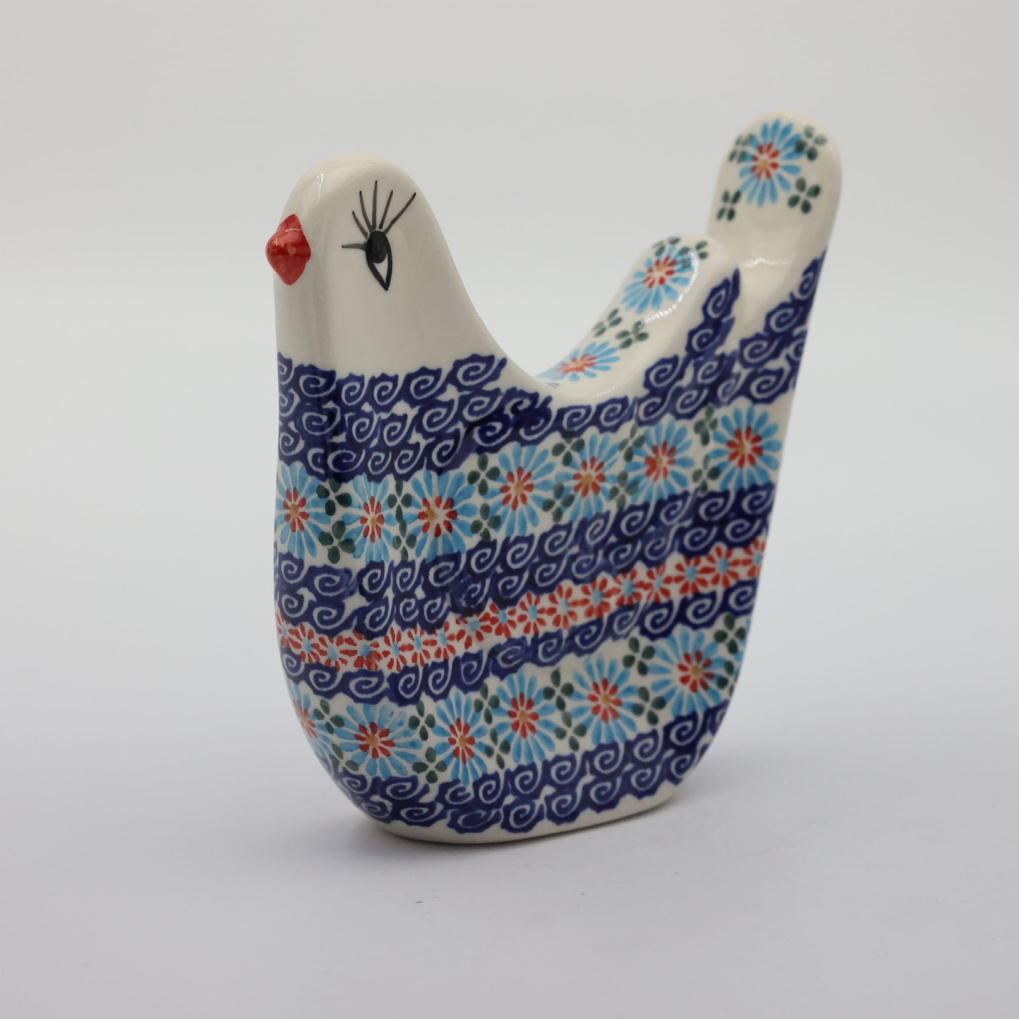 Prosta, minimalistyczna forma i oryginalny kształt z pewnością będzie pasował do każdego nowoczesnego wnętrza jak i domu tradycyjnie zdobionego polskimi wyrobami i rękodziełem. W naszej ofercie z pewnością odnajdziesz inne ptaszki i ptaki oraz zwierzątka ceramiczne.