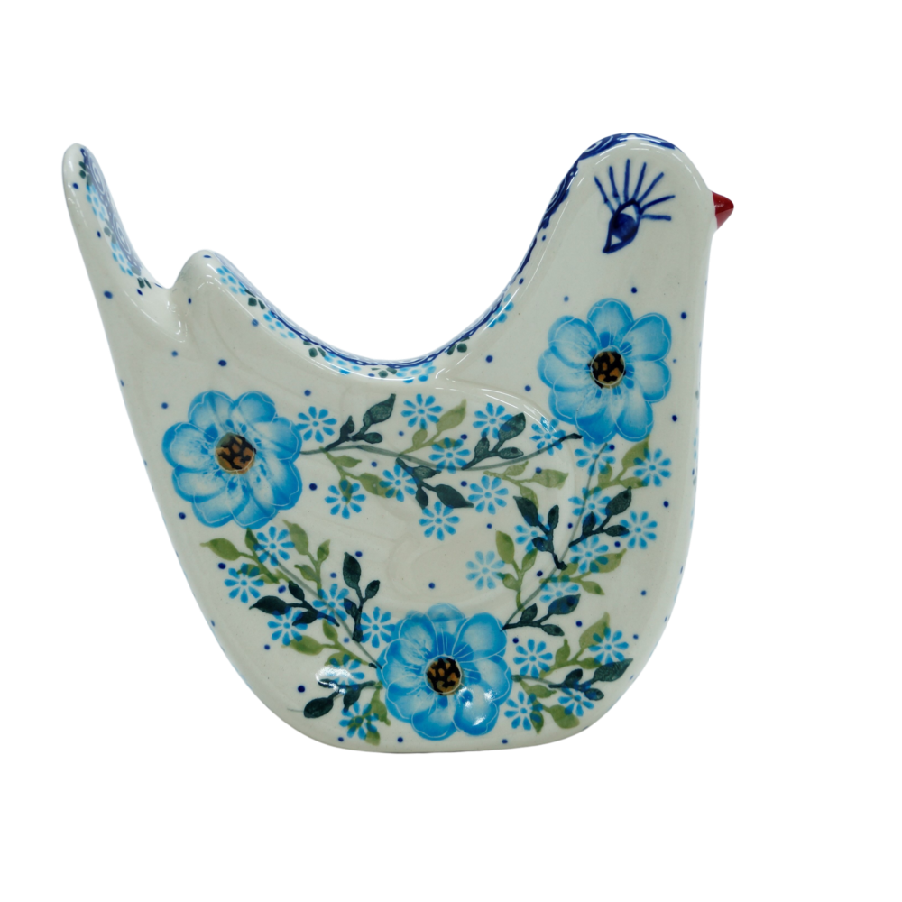 Prosta, minimalistyczna forma i oryginalny kształt z pewnością będzie pasował do każdego nowoczesnego wnętrza jak i domu tradycyjnie zdobionego polskimi wyrobami i rękodziełem. W naszej ofercie z pewnością odnajdziesz inne ptaszki i ptaki oraz zwierzątka ceramiczne.
