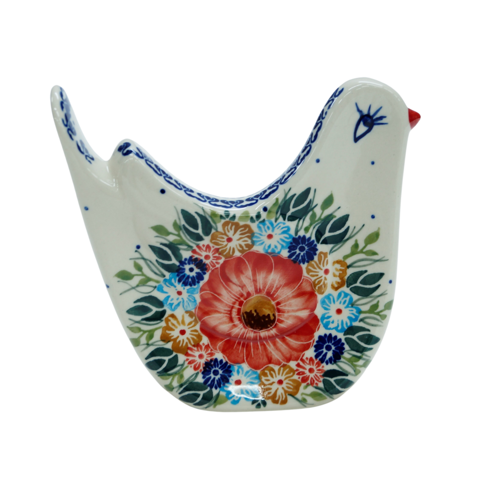 Prosta, minimalistyczna forma i oryginalny kształt z pewnością będzie pasował do każdego nowoczesnego wnętrza jak i domu tradycyjnie zdobionego polskimi wyrobami i rękodziełem. W naszej ofercie z pewnością odnajdziesz inne ptaszki i ptaki oraz zwierzątka ceramiczne.