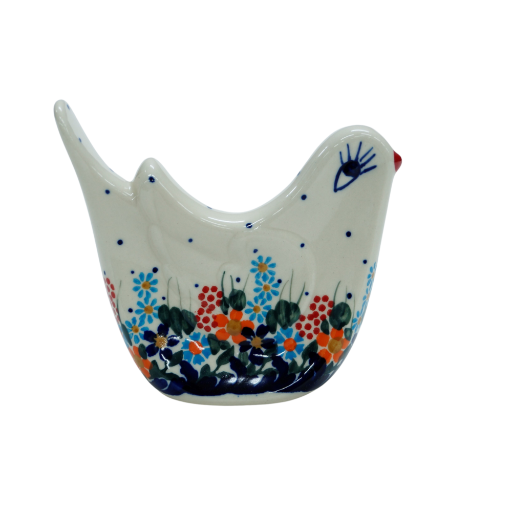 Prosta, minimalistyczna forma i oryginalny kształt z pewnością będzie pasował do każdego nowoczesnego wnętrza jak i domu tradycyjnie zdobionego polskimi wyrobami i rękodziełem. W naszej ofercie z pewnością odnajdziesz inne ptaszki i ptaki oraz zwierzątka ceramiczne.