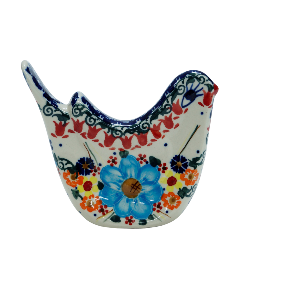 Prosta, minimalistyczna forma i oryginalny kształt z pewnością będzie pasował do każdego nowoczesnego wnętrza jak i domu tradycyjnie zdobionego polskimi wyrobami i rękodziełem. W naszej ofercie z pewnością odnajdziesz inne ptaszki i ptaki oraz zwierzątka ceramiczne.