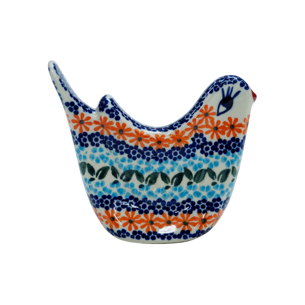 Prosta, minimalistyczna forma i oryginalny kształt z pewnością będzie pasował do każdego nowoczesnego wnętrza jak i domu tradycyjnie zdobionego polskimi wyrobami i rękodziełem. W naszej ofercie z pewnością odnajdziesz inne ptaszki i ptaki oraz zwierzątka ceramiczne.