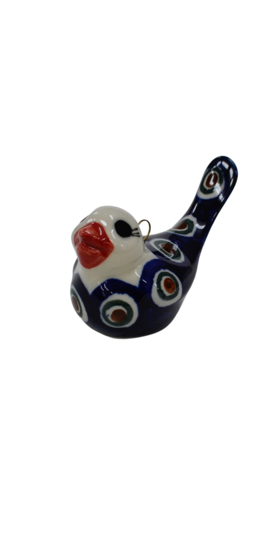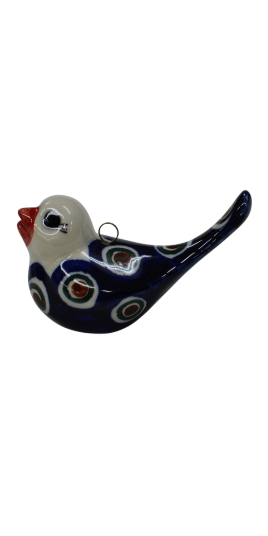 Bombka ceramiczna w kształcie ptaszka, tradycyjna ozdoba drzewka świątecznego, choinki, zarówno sztucznej, na pniu lub pachnącej choinki prosto z lasu (oczywiście zdobytej z legalnego źródła lub z plantacji). Stanowi idealny dodatek również do świątecznych stroików na stół czy jako element dekoracji domu. Bombki ceramiczne to ozdoby ręcznie malowanie w tradycyjne i unikatowe wzory ceramiki artystycznej. Posiadają metalowy zaczep, który będzie służył i spełniał swoje funkcje przez lata. Skompletuj swoje ozdoby choinkowe o bombeczki ceramiczne, które przy szklanych bombkach dodadzą uroku Twoje choince. Cienkościenny odlew sprawia iż są lekkie i swobodnie mogą zostać powieszone na choince.