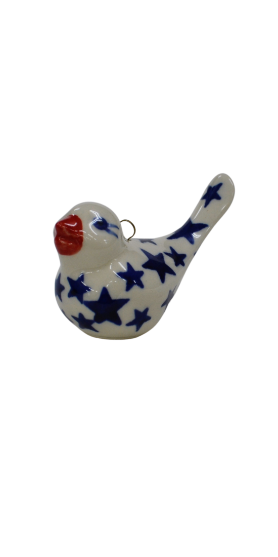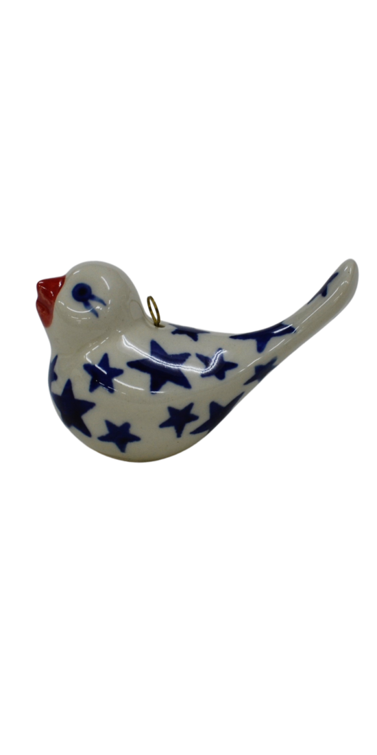 Bombka ceramiczna w kształcie ptaszka, tradycyjna ozdoba drzewka świątecznego, choinki, zarówno sztucznej, na pniu lub pachnącej choinki prosto z lasu (oczywiście zdobytej z legalnego źródła lub z plantacji). Stanowi idealny dodatek również do świątecznych stroików na stół czy jako element dekoracji domu. Bombki ceramiczne to ozdoby ręcznie malowanie w tradycyjne i unikatowe wzory ceramiki artystycznej. Posiadają metalowy zaczep, który będzie służył i spełniał swoje funkcje przez lata. Skompletuj swoje ozdoby choinkowe o bombeczki ceramiczne, które przy szklanych bombkach dodadzą uroku Twoje choince. Cienkościenny odlew sprawia iż są lekkie i swobodnie mogą zostać powieszone na choince.