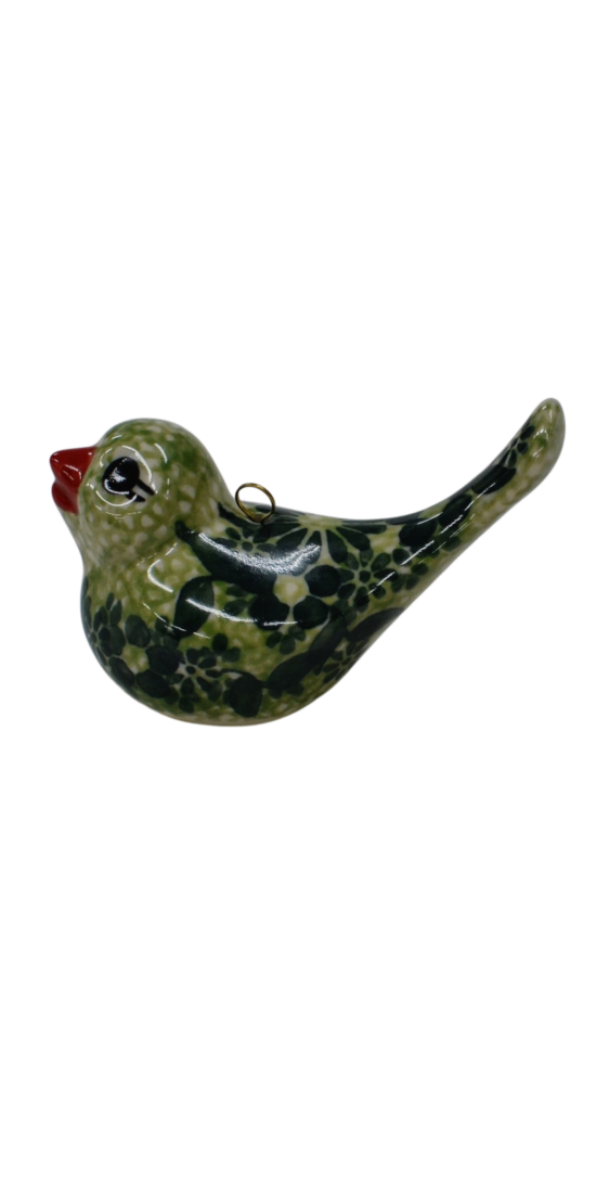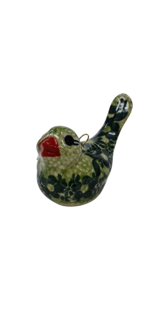 Bombka ceramiczna w kształcie ptaszka, tradycyjna ozdoba drzewka świątecznego, choinki, zarówno sztucznej, na pniu lub pachnącej choinki prosto z lasu (oczywiście zdobytej z legalnego źródła lub z plantacji). Stanowi idealny dodatek również do świątecznych stroików na stół czy jako element dekoracji domu. Bombki ceramiczne to ozdoby ręcznie malowanie w tradycyjne i unikatowe wzory ceramiki artystycznej. Posiadają metalowy zaczep, który będzie służył i spełniał swoje funkcje przez lata. Skompletuj swoje ozdoby choinkowe o bombeczki ceramiczne, które przy szklanych bombkach dodadzą uroku Twoje choince. Cienkościenny odlew sprawia iż są lekkie i swobodnie mogą zostać powieszone na choince.