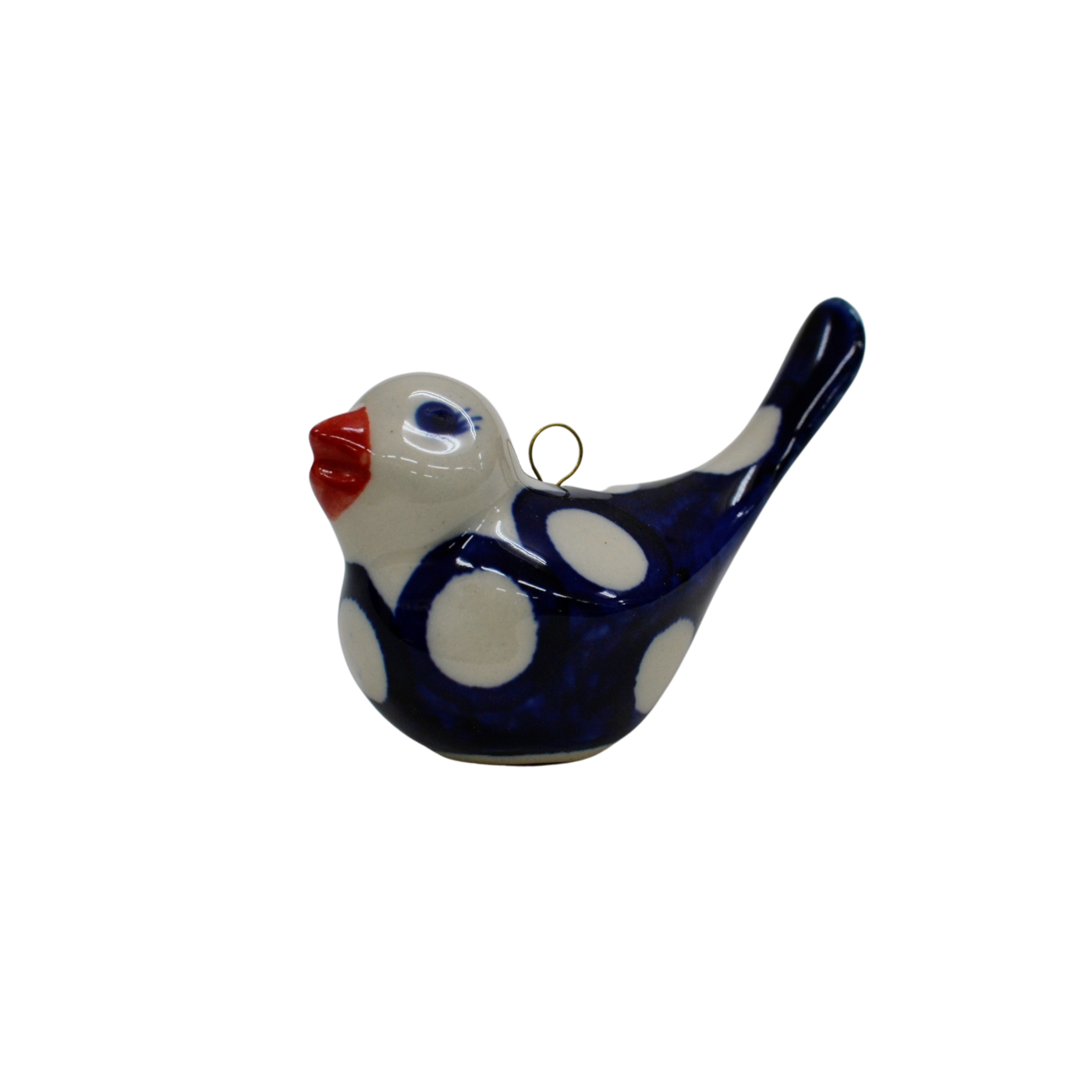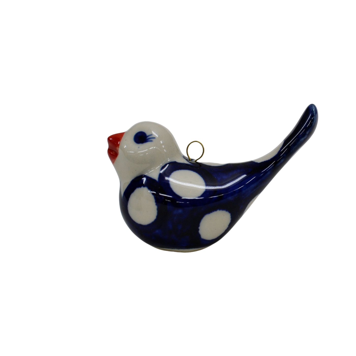 Bombka ceramiczna w kształcie ptaszka, tradycyjna ozdoba drzewka świątecznego, choinki, zarówno sztucznej, na pniu lub pachnącej choinki prosto z lasu (oczywiście zdobytej z legalnego źródła lub z plantacji). Stanowi idealny dodatek również do świątecznych stroików na stół czy jako element dekoracji domu. Bombki ceramiczne to ozdoby ręcznie malowanie w tradycyjne i unikatowe wzory ceramiki artystycznej. Posiadają metalowy zaczep, który będzie służył i spełniał swoje funkcje przez lata. Skompletuj swoje ozdoby choinkowe o bombeczki ceramiczne, które przy szklanych bombkach dodadzą uroku Twoje choince. Cienkościenny odlew sprawia iż są lekkie i swobodnie mogą zostać powieszone na choince.
