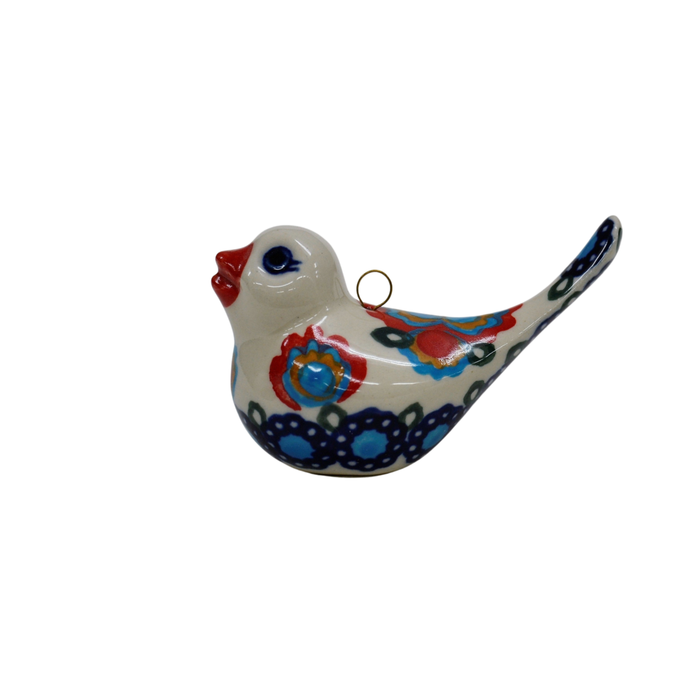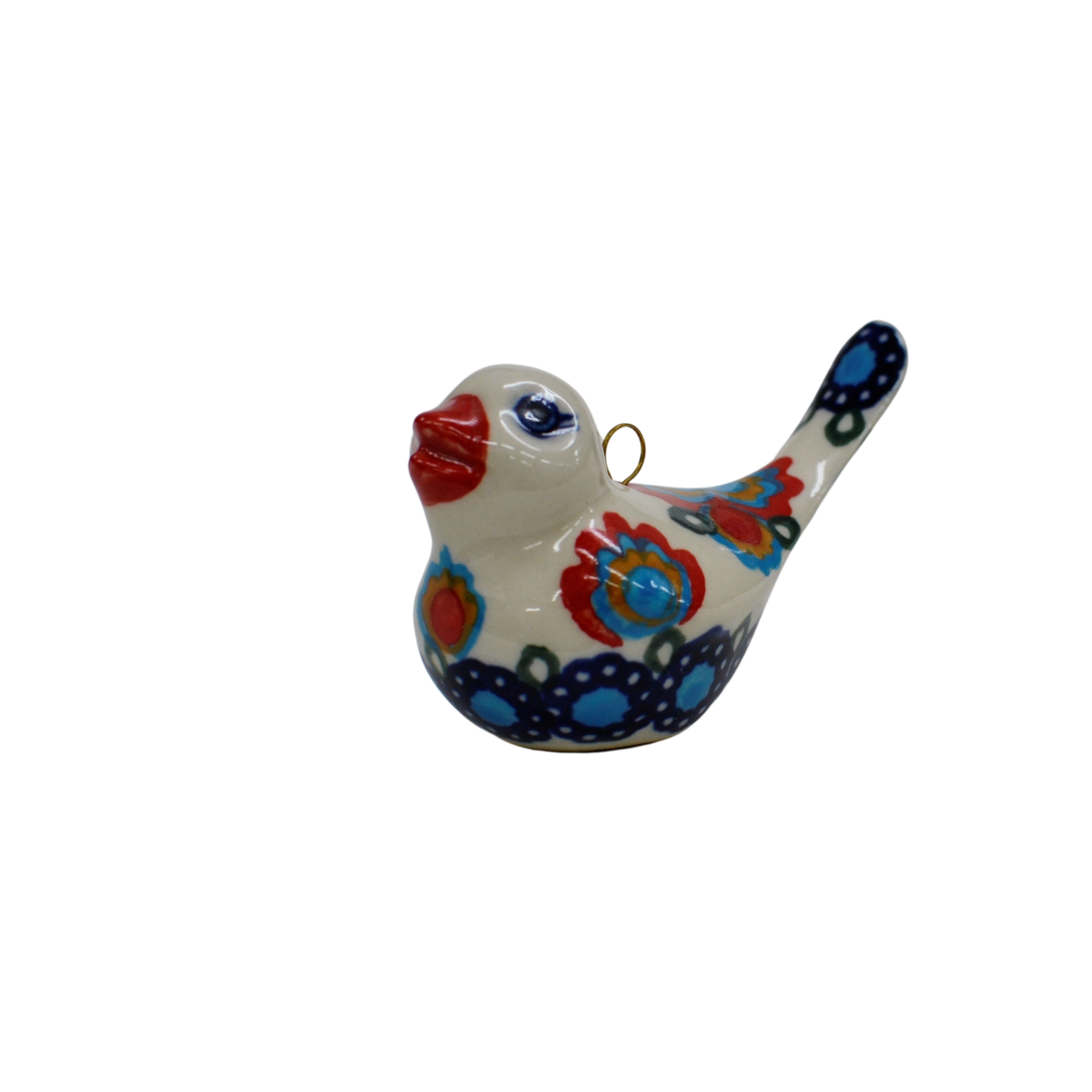 Bombka ceramiczna w kształcie ptaszka, tradycyjna ozdoba drzewka świątecznego, choinki, zarówno sztucznej, na pniu lub pachnącej choinki prosto z lasu (oczywiście zdobytej z legalnego źródła lub z plantacji). Stanowi idealny dodatek również do świątecznych stroików na stół czy jako element dekoracji domu. Bombki ceramiczne to ozdoby ręcznie malowanie w tradycyjne i unikatowe wzory ceramiki artystycznej. Posiadają metalowy zaczep, który będzie służył i spełniał swoje funkcje przez lata. Skompletuj swoje ozdoby choinkowe o bombeczki ceramiczne, które przy szklanych bombkach dodadzą uroku Twoje choince. Cienkościenny odlew sprawia iż są lekkie i swobodnie mogą zostać powieszone na choince.