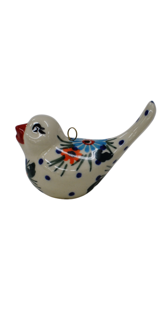 Bombka ceramiczna w kształcie ptaszka, tradycyjna ozdoba drzewka świątecznego, choinki, zarówno sztucznej, na pniu lub pachnącej choinki prosto z lasu (oczywiście zdobytej z legalnego źródła lub z plantacji). Stanowi idealny dodatek również do świątecznych stroików na stół czy jako element dekoracji domu. Bombki ceramiczne to ozdoby ręcznie malowanie w tradycyjne i unikatowe wzory ceramiki artystycznej. Posiadają metalowy zaczep, który będzie służył i spełniał swoje funkcje przez lata. Skompletuj swoje ozdoby choinkowe o bombeczki ceramiczne, które przy szklanych bombkach dodadzą uroku Twoje choince. Cienkościenny odlew sprawia iż są lekkie i swobodnie mogą zostać powieszone na choince.