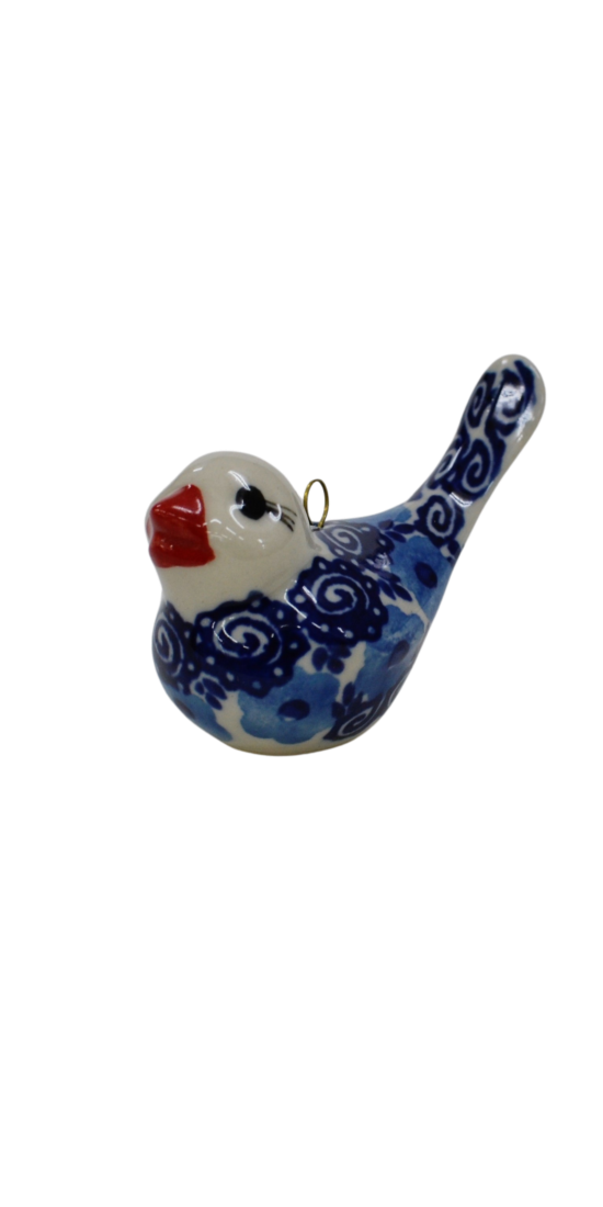 Bombka ceramiczna w kształcie ptaszka, tradycyjna ozdoba drzewka świątecznego, choinki, zarówno sztucznej, na pniu lub pachnącej choinki prosto z lasu (oczywiście zdobytej z legalnego źródła lub z plantacji). Stanowi idealny dodatek również do świątecznych stroików na stół czy jako element dekoracji domu. Bombki ceramiczne to ozdoby ręcznie malowanie w tradycyjne i unikatowe wzory ceramiki artystycznej. Posiadają metalowy zaczep, który będzie służył i spełniał swoje funkcje przez lata. Skompletuj swoje ozdoby choinkowe o bombeczki ceramiczne, które przy szklanych bombkach dodadzą uroku Twoje choince. Cienkościenny odlew sprawia iż są lekkie i swobodnie mogą zostać powieszone na choince.