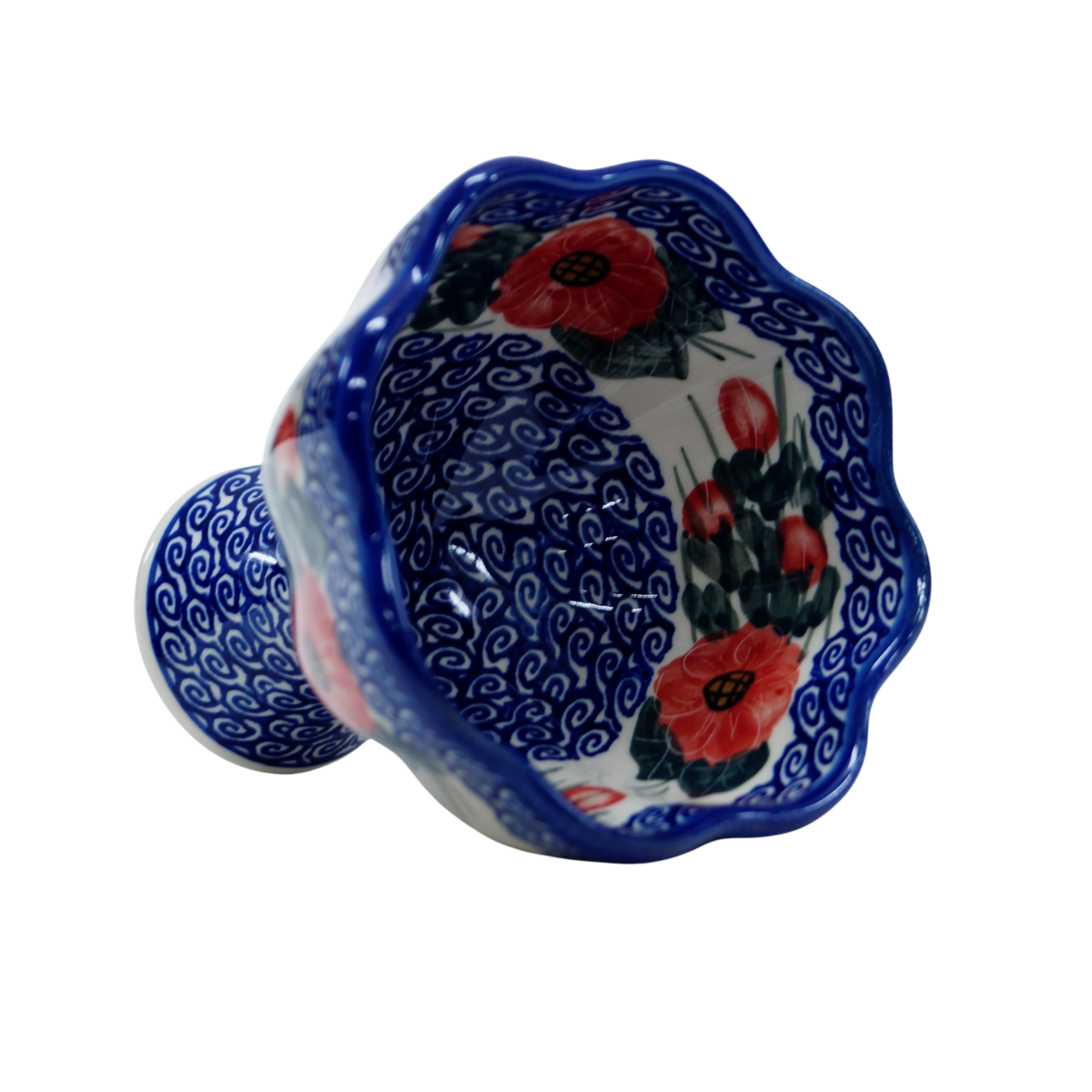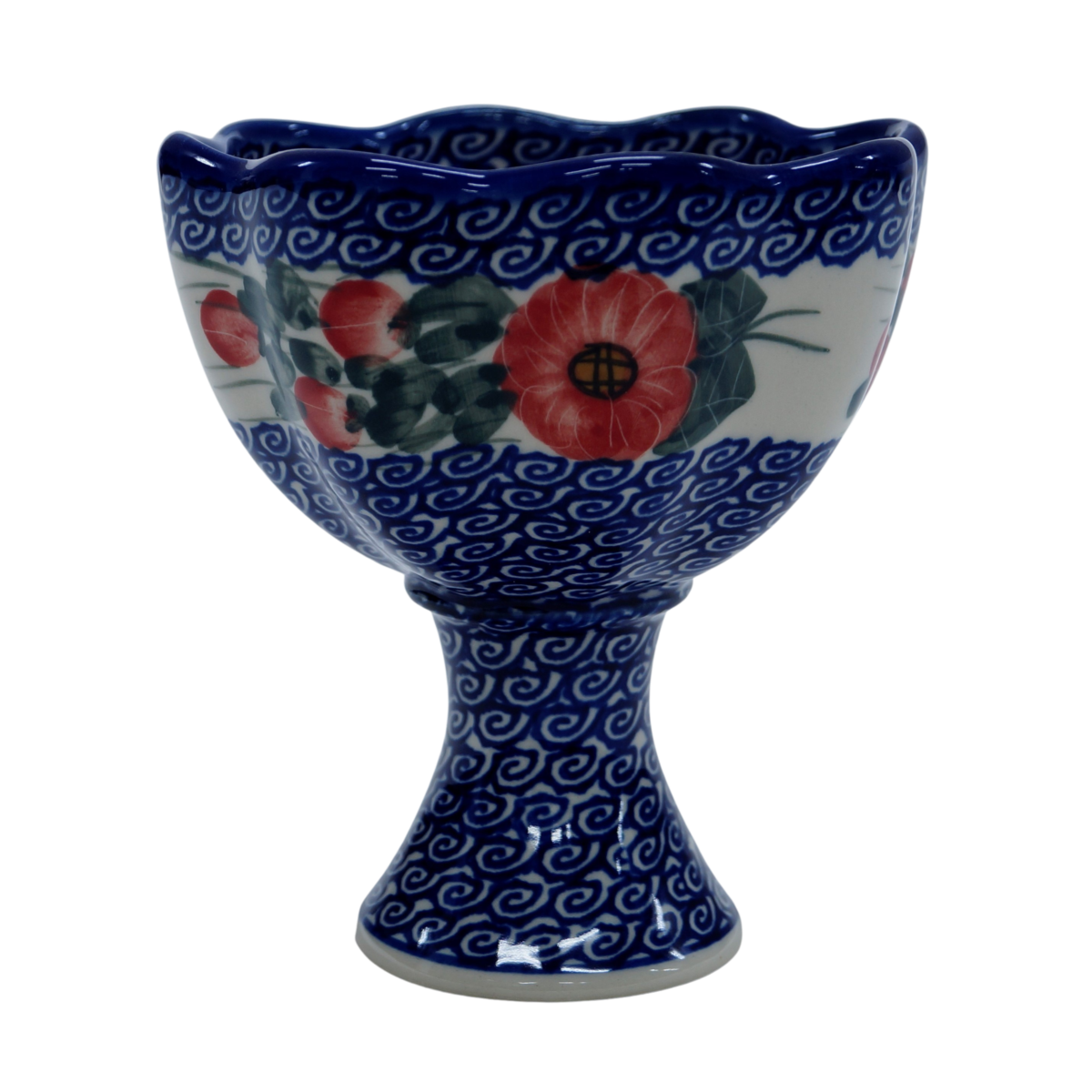 Ceramiczny pucharek na lody to ręcznie zdobione naczynie ceramiczne do podawania lodów, deserów lodowych, deserów owocowych czy smakowitych galaretek z owocami. Koktajl ze świeżych truskawek z lodami waniliowymi w otoczeniu pięknych zdobień podszkliwnych zachwyci Twoich najbliższych podczas po południowego poczęstunku.