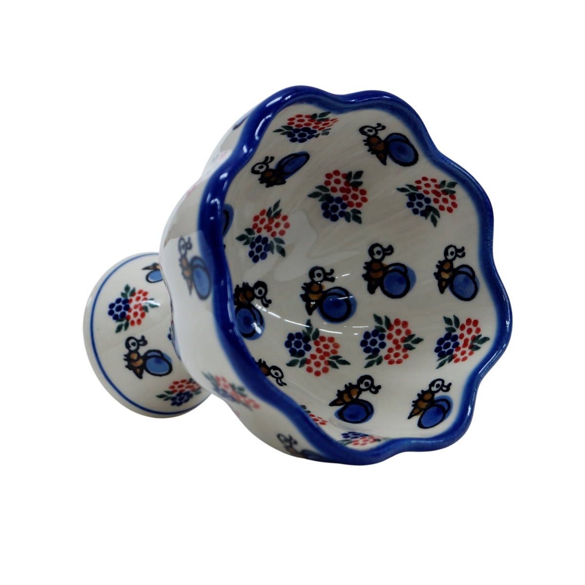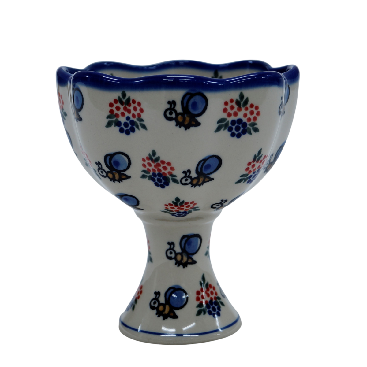 Ceramiczny pucharek na lody to ręcznie zdobione naczynie ceramiczne do podawania lodów, deserów lodowych, deserów owocowych czy smakowitych galaretek z owocami. Koktajl ze świeżych truskawek z lodami waniliowymi w otoczeniu pięknych zdobień podszkliwnych zachwyci Twoich najbliższych podczas po południowego poczęstunku.