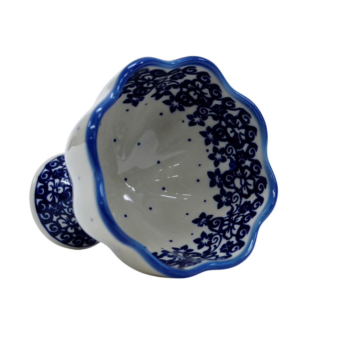 Ceramiczny pucharek na lody to ręcznie zdobione naczynie ceramiczne do podawania lodów, deserów lodowych, deserów owocowych czy smakowitych galaretek z owocami. Koktajl ze świeżych truskawek z lodami waniliowymi w otoczeniu pięknych zdobień podszkliwnych zachwyci Twoich najbliższych podczas po południowego poczęstunku.