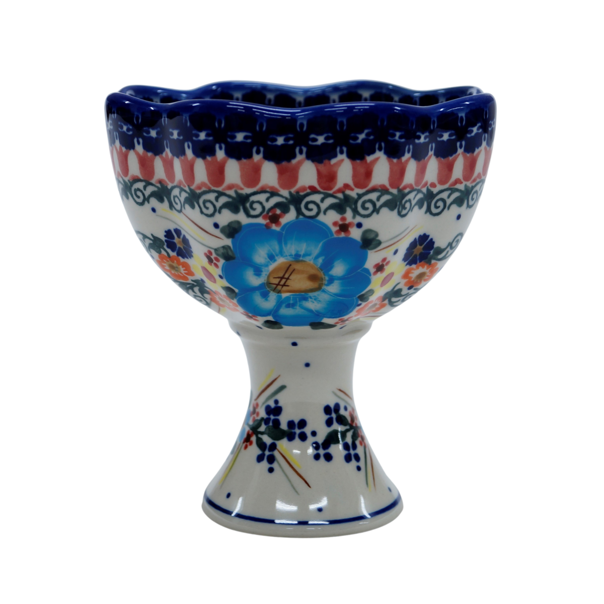 Ceramiczny pucharek na lody to ręcznie zdobione naczynie ceramiczne do podawania lodów, deserów lodowych, deserów owocowych czy smakowitych galaretek z owocami. Koktajl ze świeżych truskawek z lodami waniliowymi w otoczeniu pięknych zdobień podszkliwnych zachwyci Twoich najbliższych podczas po południowego poczęstunku.