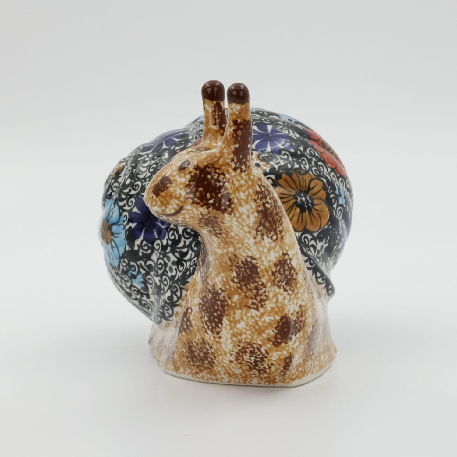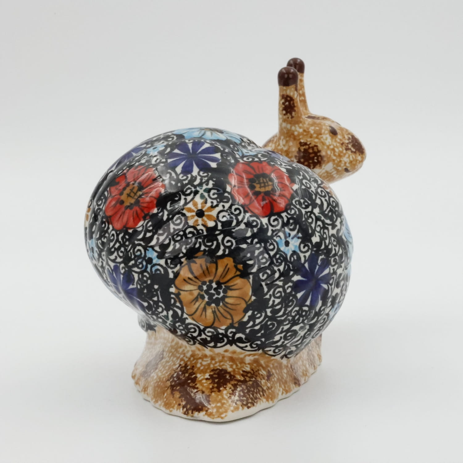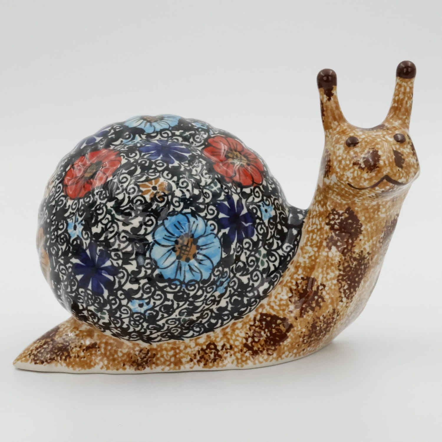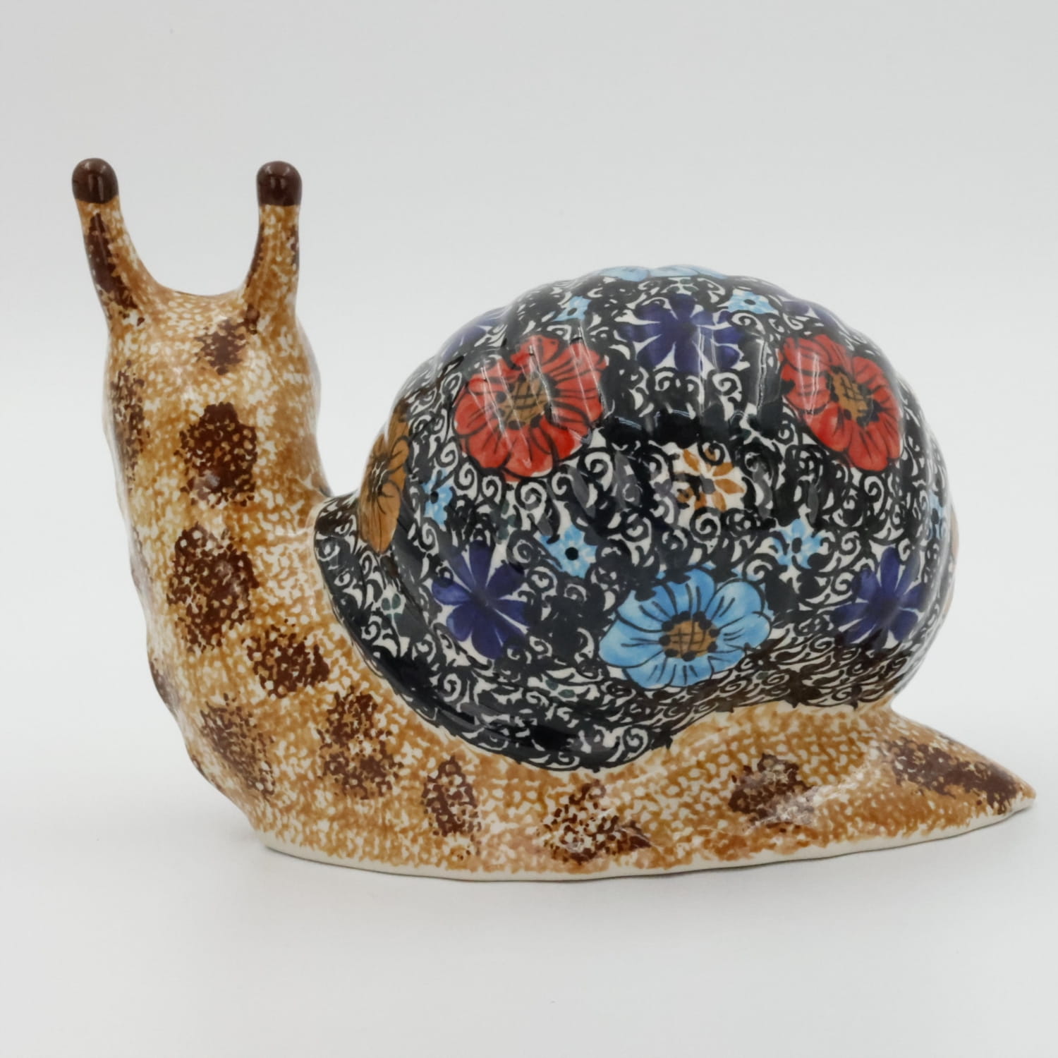 Ceramiczny ślimak dekoracyjny, wykonany w bolesławieckiej manufakturze ceramiki artystycznej. Pięknie dekorowany ślimak, który idealne nadaje się do dekoracji domowych ogródków i domów.