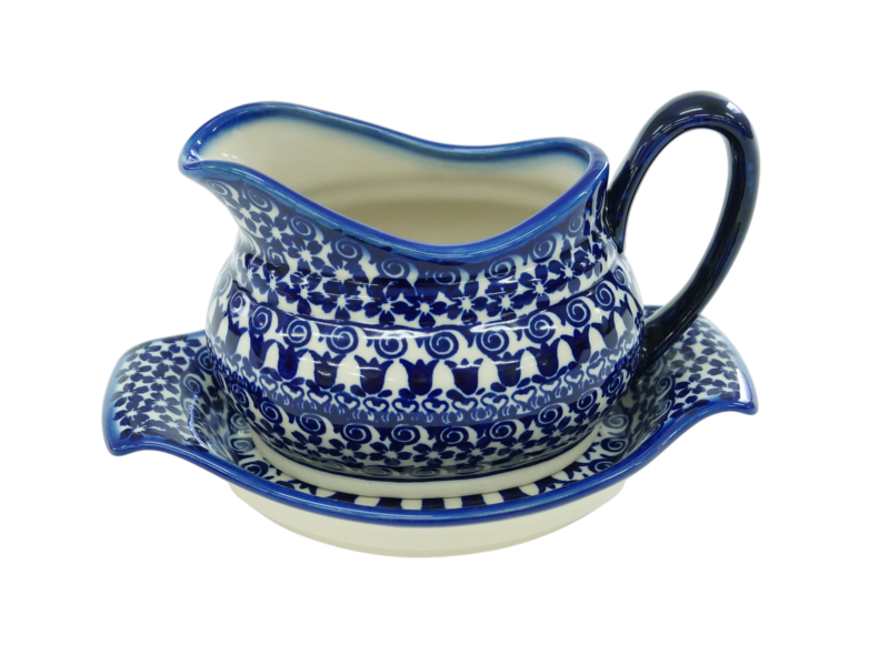 Sosjerka z podstawką z Bolesławca z fabryki ceramiki, ANDY CERAMIKA. Sosjerka ceramiczna to podstawowe wyposażenie kuchni, które przydaje się niemal codziennie do podawania różnego rodzaju sosów. Subtelna sosjerka z rączką podkreśla charakter podania sosu a podstawka chroni obrus przed zabrudzeniem. Warto dołączyć do niej chochelkę aby móc łatwiej rozlewać sos na talerze bądź nalewać sos bezpośrednio ze sosjerki. Ręcznie malowana sosjerka z ceramiki o praktycznym zastosowaniu podczas serwowania posiłków.
