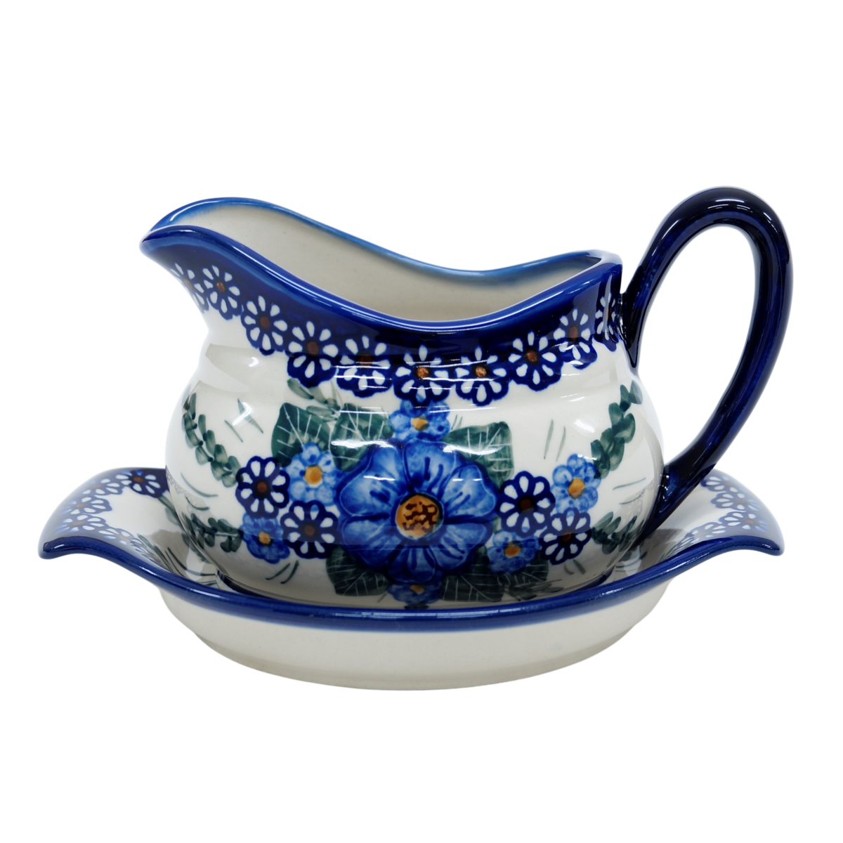 Sosjerka z podstawką z Bolesławca z fabryki ceramiki, ANDY CERAMIKA. Sosjerka ceramiczna to podstawowe wyposażenie kuchni, które przydaje się niemal codziennie do podawania różnego rodzaju sosów. Subtelna sosjerka z rączką podkreśla charakter podania sosu a podstawka chroni obrus przed zabrudzeniem. Warto dołączyć do niej chochelkę aby móc łatwiej rozlewać sos na talerze bądź nalewać sos bezpośrednio ze sosjerki. Ręcznie malowana sosjerka z ceramiki o praktycznym zastosowaniu podczas serwowania posiłków.