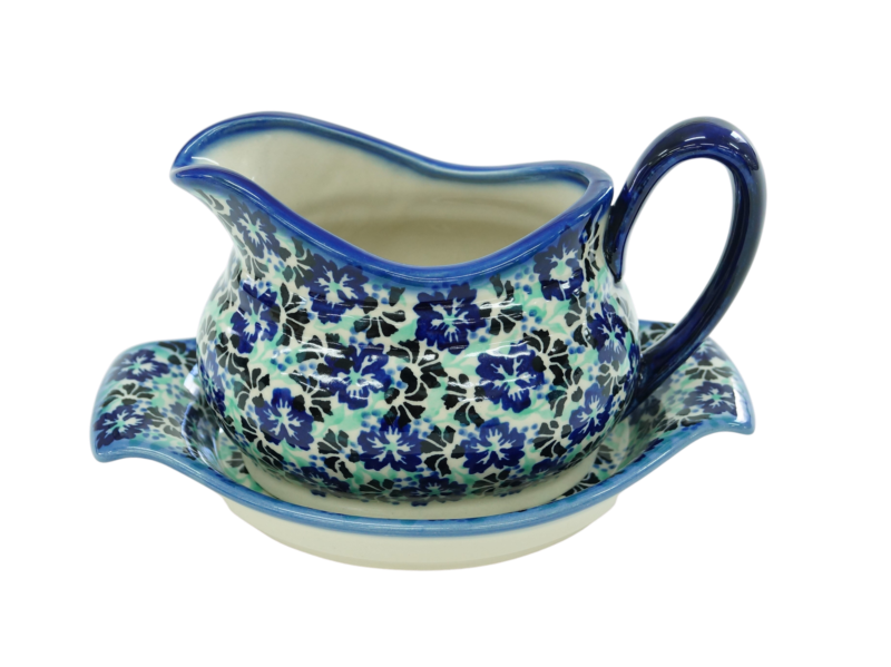 Sosjerka z podstawką z Bolesławca z fabryki ceramiki, ANDY CERAMIKA. Sosjerka ceramiczna to podstawowe wyposażenie kuchni, które przydaje się niemal codziennie do podawania różnego rodzaju sosów. Subtelna sosjerka z rączką podkreśla charakter podania sosu a podstawka chroni obrus przed zabrudzeniem. Warto dołączyć do niej chochelkę aby móc łatwiej rozlewać sos na talerze bądź nalewać sos bezpośrednio ze sosjerki. Ręcznie malowana sosjerka z ceramiki o praktycznym zastosowaniu podczas serwowania posiłków.