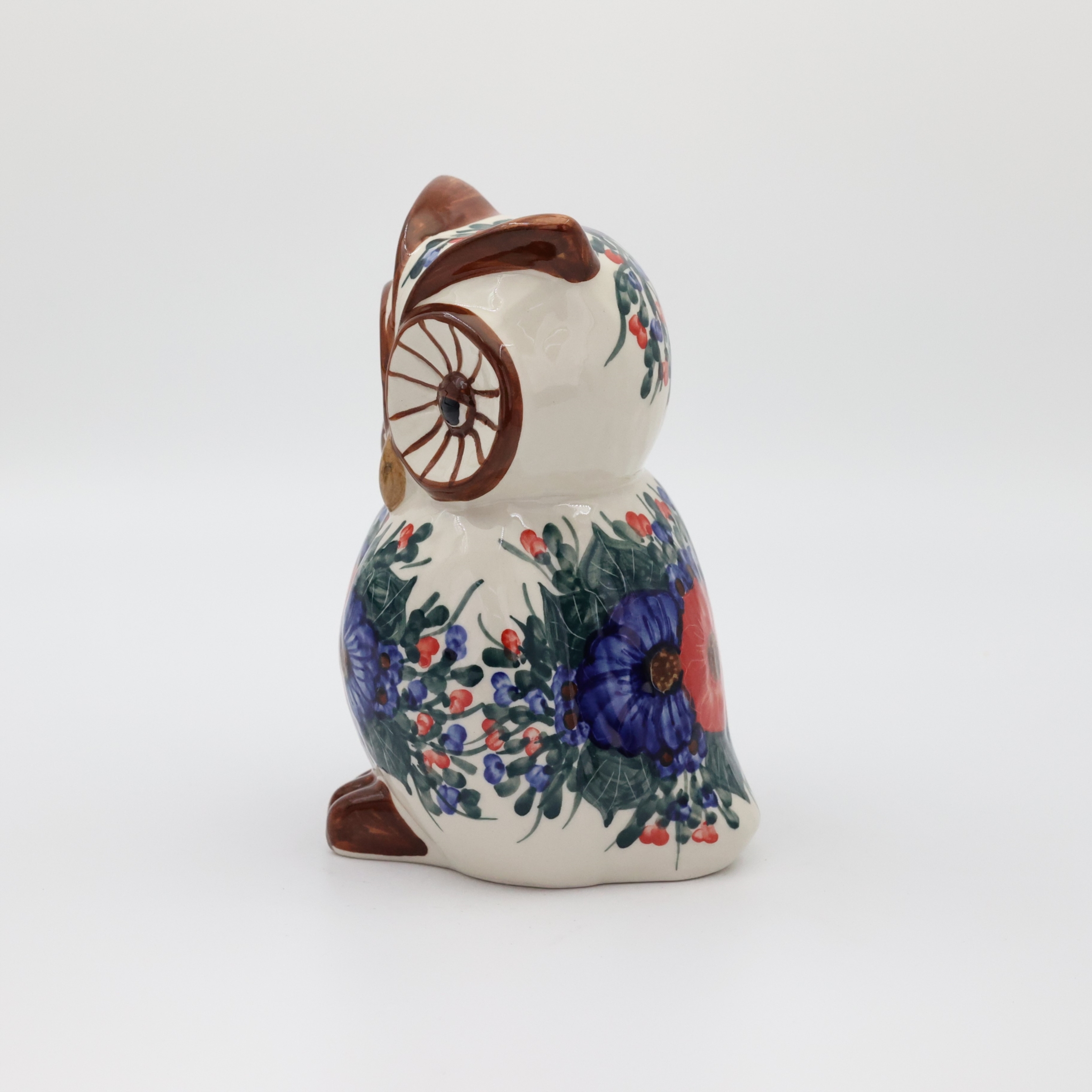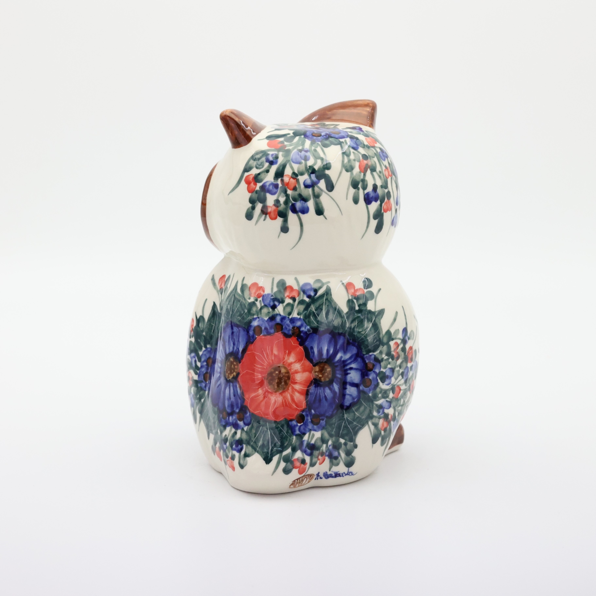 Ceramiczna sowa z Bolesławca to wyjątkowa ozdoba stworzona przez pracownię Andy Ceramika, która łączy w sobie tradycyjne bolesławieckie wzornictwo z urokiem ręcznego wykonania. Figurka została starannie uformowana i pokryta szkliwem, a następnie ręcznie ozdobiona motywem kwiatowym w charakterystycznych odcieniach kobaltu, zieleni. Jej duże, wyraziste oczy oraz subtelnie zaznaczone detale sprawiają, że przyciąga uwagę i wnosi do wnętrza ciepło oraz odrobinę artystycznej duszy. To nie tylko piękna dekoracja, ale również symbol mądrości i harmonii, który doskonale odnajdzie się zarówno w domowym salonie, jak i w przytulnym biurze czy dziecięcym pokoju.