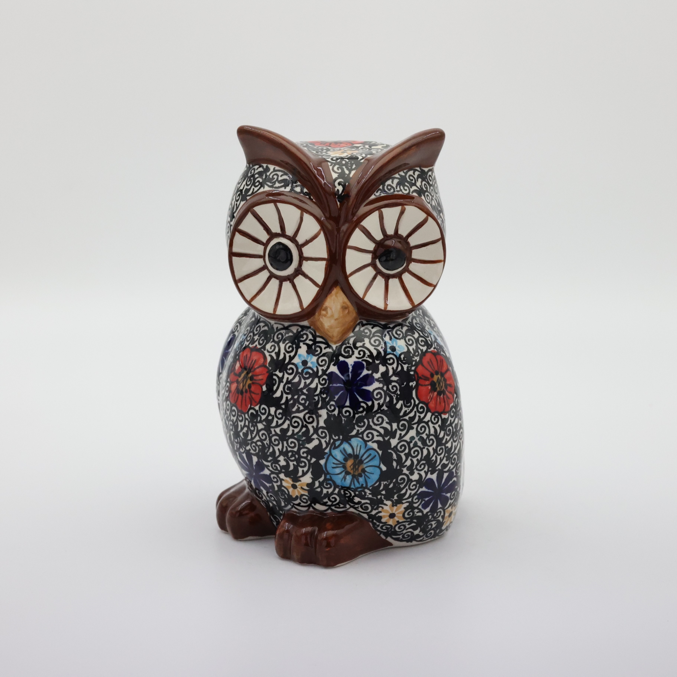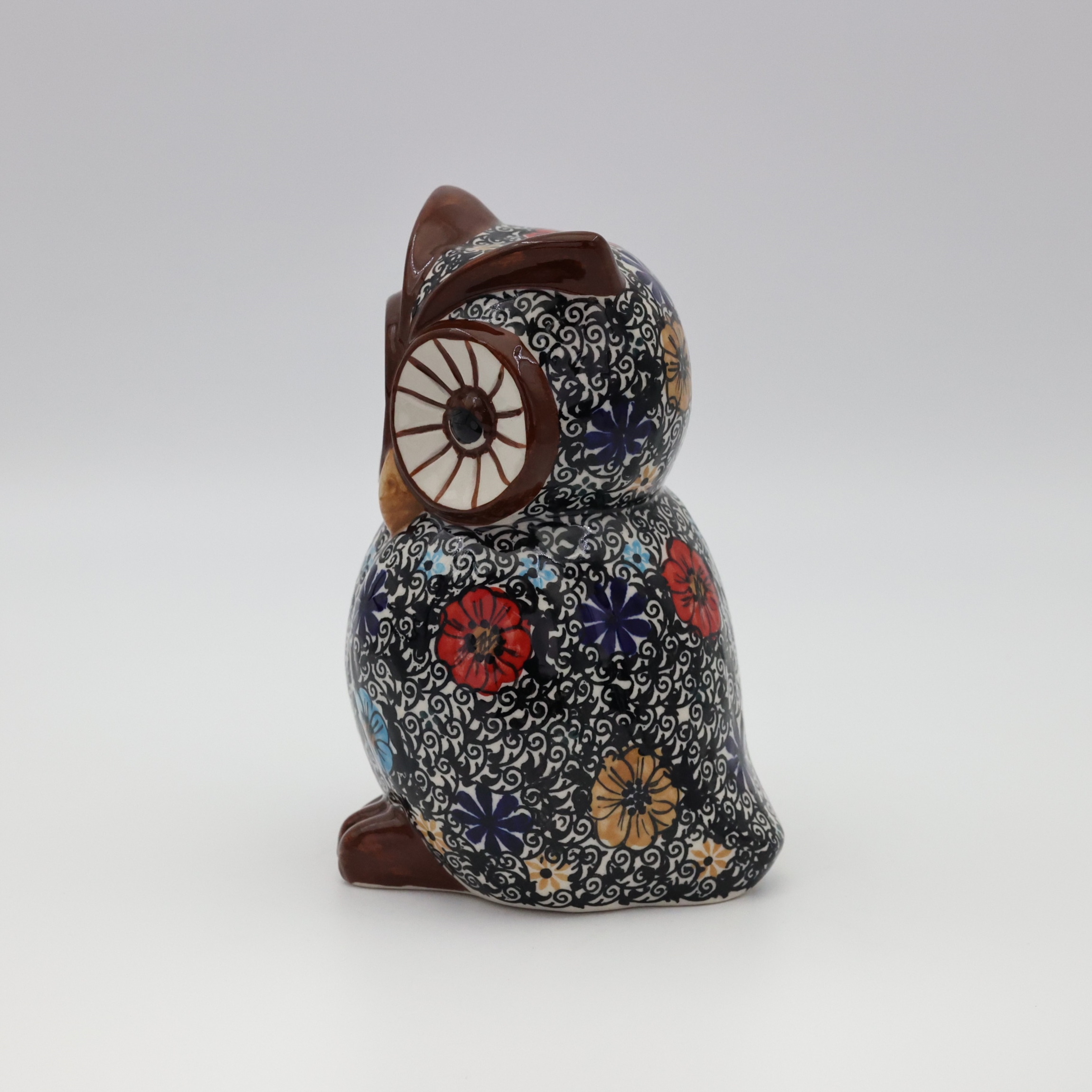 Ceramiczna sowa z Bolesławca to wyjątkowa ozdoba stworzona przez pracownię Andy Ceramika, która łączy w sobie tradycyjne bolesławieckie wzornictwo z urokiem ręcznego wykonania. Figurka została starannie uformowana i pokryta szkliwem, a następnie ręcznie ozdobiona motywem kwiatowym w charakterystycznych odcieniach kobaltu, zieleni. Jej duże, wyraziste oczy oraz subtelnie zaznaczone detale sprawiają, że przyciąga uwagę i wnosi do wnętrza ciepło oraz odrobinę artystycznej duszy. To nie tylko piękna dekoracja, ale również symbol mądrości i harmonii, który doskonale odnajdzie się zarówno w domowym salonie, jak i w przytulnym biurze czy dziecięcym pokoju.