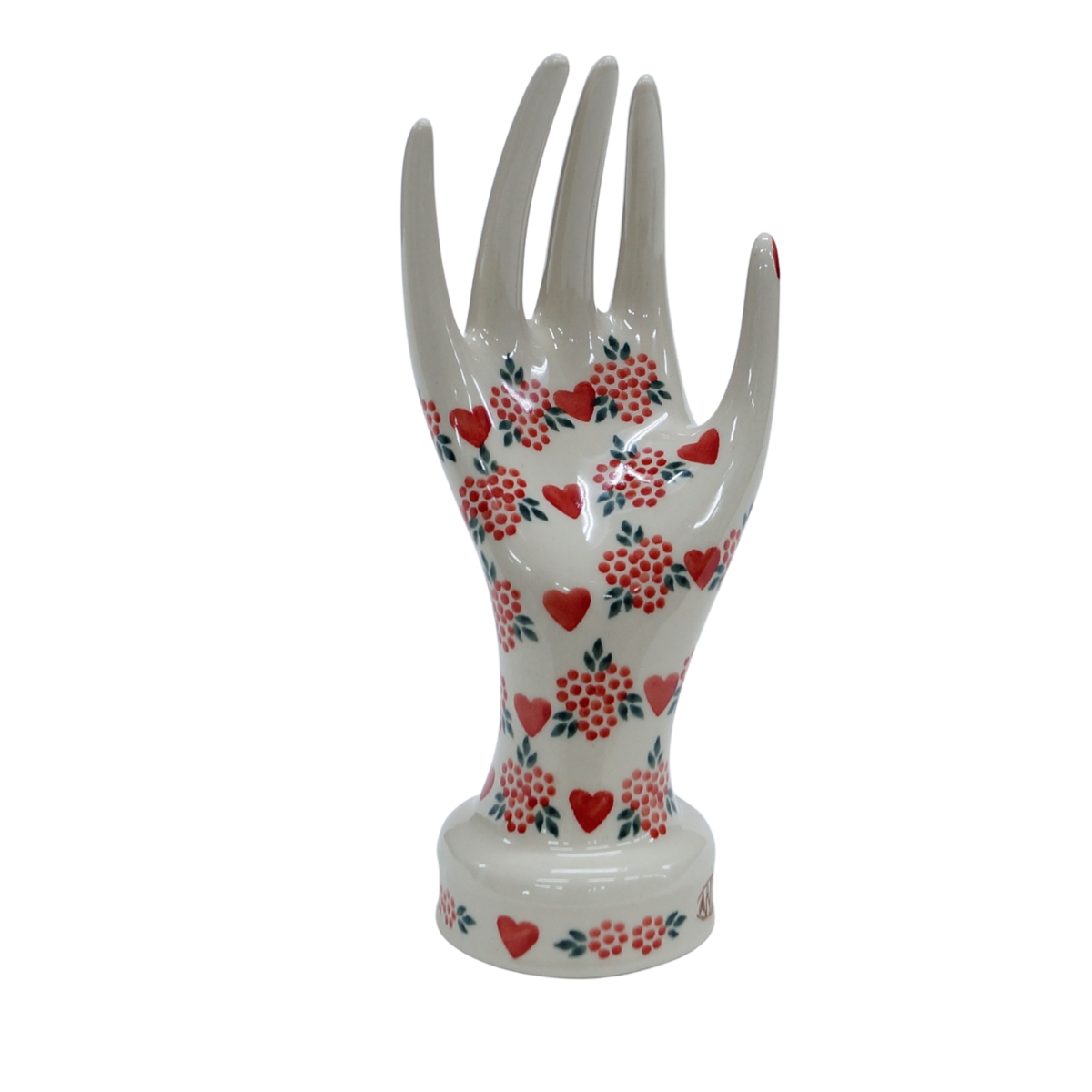Ceramiczny stojak na biżuterię duży, w kształcie powabnej, damskiej dłoni ozdobionymi podszkliwnymi wzorami – niczym przyodziany w wyjątkowo śliczną rękawiczkę, to oryginalny i nieoceniony wieszak dla kobiecych świecidełek. Rewelacyjnie wyglądający dodatek dekoracyjny a zarazem funkcjonalny kobiecej toaletki jak i łazienki. Dzięki szkliwieniu, jest bardzo łatwy w utrzymaniu czystości. Zawieszona na nim biżuteria taka jak, łańcuszki, kolczyki czy pierścionki będą zawsze pod ręką, ułożone w piękny sposób.
