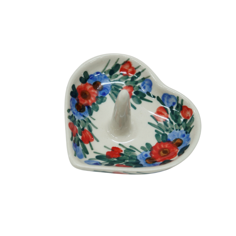 Ceramiczny stojak, podstawka na biżuterię w kształcie serca z trzpieniem. Wyrób ceramiczny dekoracyjny, ozdobionymi podszkliwnymi wzorami, prosto z Bolesławca, to oryginalny i nieoceniony wieszak/stojak dla kobiecych świecidełek. Rewelacyjnie wyglądający dodatek dekoracyjny a zarazem funkcjonalny kobiecej toaletki jak i łazienki, taki który pozwoli na zaprzestanie gubienia biżuterii w całym domu! Ahhh… skąd my to znamy! Dzięki szkliwieniu, jest bardzo łatwy w utrzymaniu czystości. Zawieszona na nim biżuteria taka jak, łańcuszki, kolczyki czy pierścionki będą zawsze pod ręką, ułożone w piękny sposób.