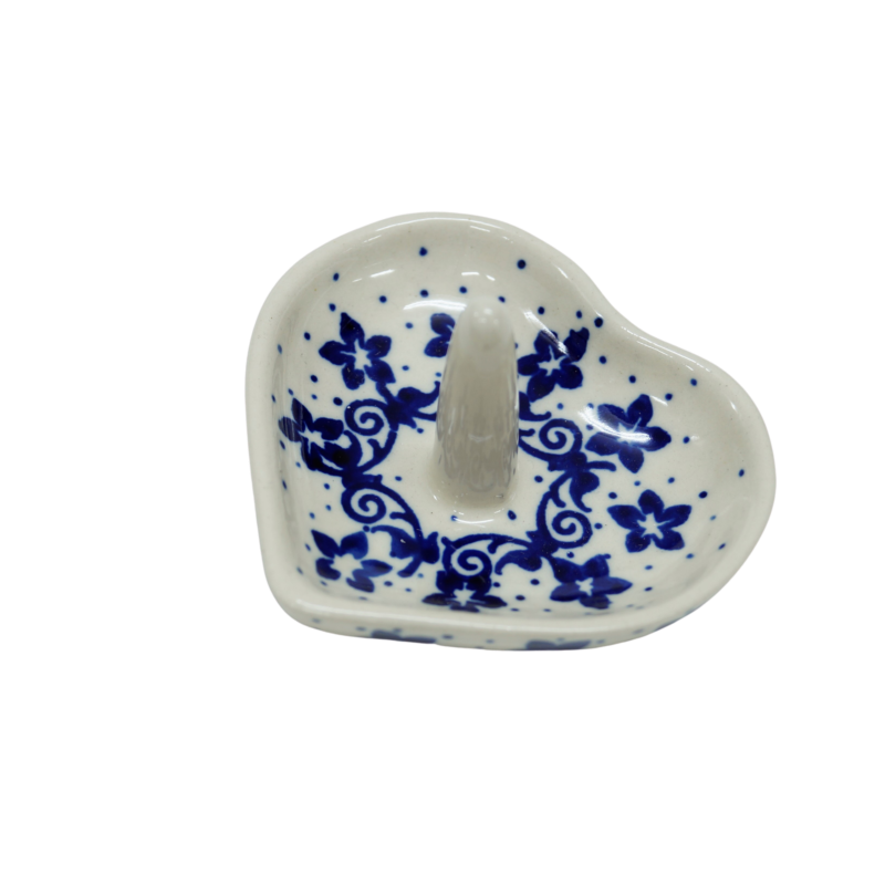 Ceramiczny stojak, podstawka na biżuterię w kształcie serca z trzpieniem. Wyrób ceramiczny dekoracyjny, ozdobionymi podszkliwnymi wzorami, prosto z Bolesławca, to oryginalny i nieoceniony wieszak/stojak dla kobiecych świecidełek. Rewelacyjnie wyglądający dodatek dekoracyjny a zarazem funkcjonalny kobiecej toaletki jak i łazienki, taki który pozwoli na zaprzestanie gubienia biżuterii w całym domu! Ahhh… skąd my to znamy! Dzięki szkliwieniu, jest bardzo łatwy w utrzymaniu czystości. Zawieszona na nim biżuteria taka jak, łańcuszki, kolczyki czy pierścionki będą zawsze pod ręką, ułożone w piękny sposób.