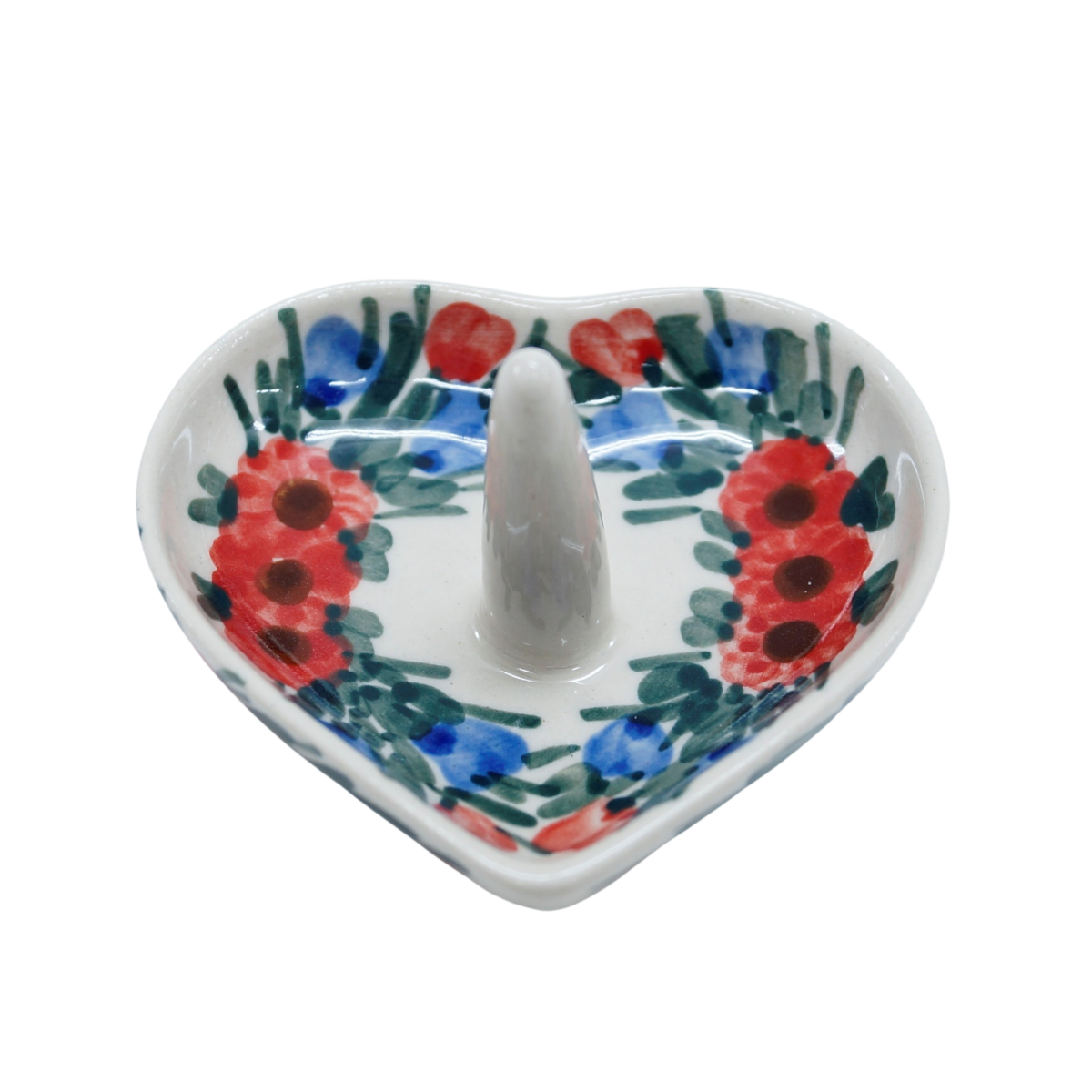 Ceramiczny stojak, podstawka na biżuterię w kształcie serca z trzpieniem. Wyrób ceramiczny dekoracyjny, ozdobionymi podszkliwnymi wzorami, prosto z Bolesławca, to oryginalny i nieoceniony wieszak/stojak dla kobiecych świecidełek. Rewelacyjnie wyglądający dodatek dekoracyjny a zarazem funkcjonalny kobiecej toaletki jak i łazienki, taki który pozwoli na zaprzestanie gubienia biżuterii w całym domu! Ahhh… skąd my to znamy! Dzięki szkliwieniu, jest bardzo łatwy w utrzymaniu czystości. Zawieszona na nim biżuteria taka jak, łańcuszki, kolczyki czy pierścionki będą zawsze pod ręką, ułożone w piękny sposób.