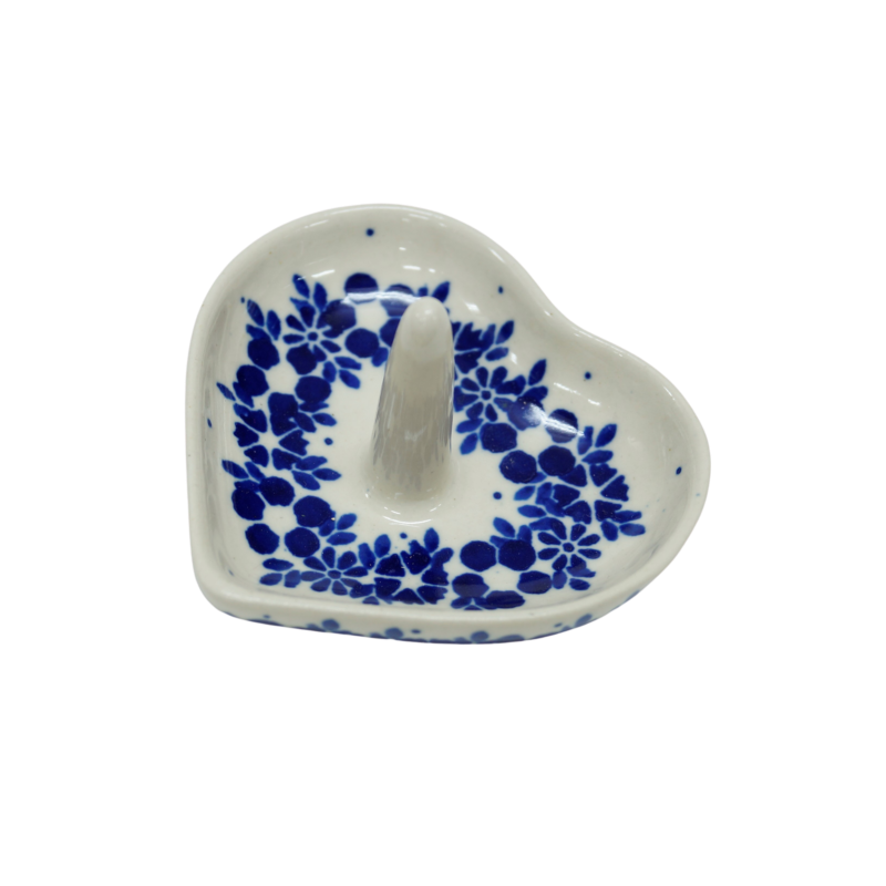 Ceramiczny stojak, podstawka na biżuterię w kształcie serca z trzpieniem. Wyrób ceramiczny dekoracyjny, ozdobionymi podszkliwnymi wzorami, prosto z Bolesławca, to oryginalny i nieoceniony wieszak/stojak dla kobiecych świecidełek. Rewelacyjnie wyglądający dodatek dekoracyjny a zarazem funkcjonalny kobiecej toaletki jak i łazienki, taki który pozwoli na zaprzestanie gubienia biżuterii w całym domu! Ahhh… skąd my to znamy! Dzięki szkliwieniu, jest bardzo łatwy w utrzymaniu czystości. Zawieszona na nim biżuteria taka jak, łańcuszki, kolczyki czy pierścionki będą zawsze pod ręką, ułożone w piękny sposób.