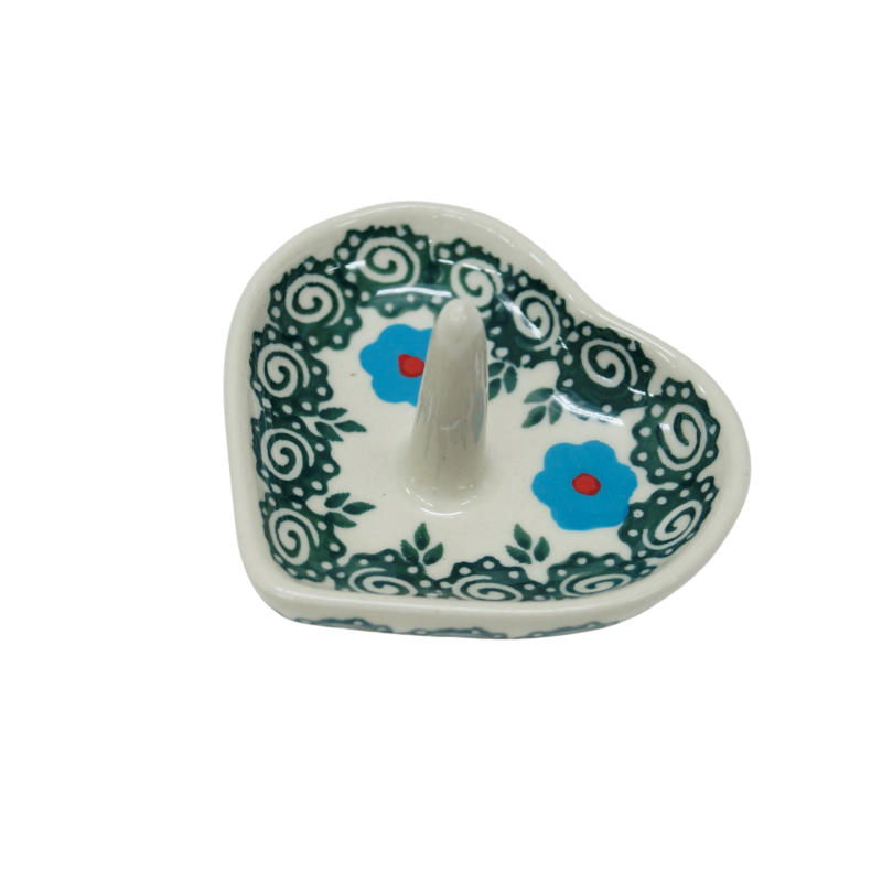 Ceramiczny stojak, podstawka na biżuterię w kształcie serca z trzpieniem. Wyrób ceramiczny dekoracyjny, ozdobionymi podszkliwnymi wzorami, prosto z Bolesławca, to oryginalny i nieoceniony wieszak/stojak dla kobiecych świecidełek. Rewelacyjnie wyglądający dodatek dekoracyjny a zarazem funkcjonalny kobiecej toaletki jak i łazienki, taki który pozwoli na zaprzestanie gubienia biżuterii w całym domu! Ahhh… skąd my to znamy! Dzięki szkliwieniu, jest bardzo łatwy w utrzymaniu czystości. Zawieszona na nim biżuteria taka jak, łańcuszki, kolczyki czy pierścionki będą zawsze pod ręką, ułożone w piękny sposób.