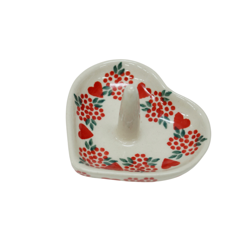 Ceramiczny stojak, podstawka na biżuterię w kształcie serca z trzpieniem. Wyrób ceramiczny dekoracyjny, ozdobionymi podszkliwnymi wzorami, prosto z Bolesławca, to oryginalny i nieoceniony wieszak/stojak dla kobiecych świecidełek. Rewelacyjnie wyglądający dodatek dekoracyjny a zarazem funkcjonalny kobiecej toaletki jak i łazienki, taki który pozwoli na zaprzestanie gubienia biżuterii w całym domu! Ahhh… skąd my to znamy! Dzięki szkliwieniu, jest bardzo łatwy w utrzymaniu czystości. Zawieszona na nim biżuteria taka jak, łańcuszki, kolczyki czy pierścionki będą zawsze pod ręką, ułożone w piękny sposób.