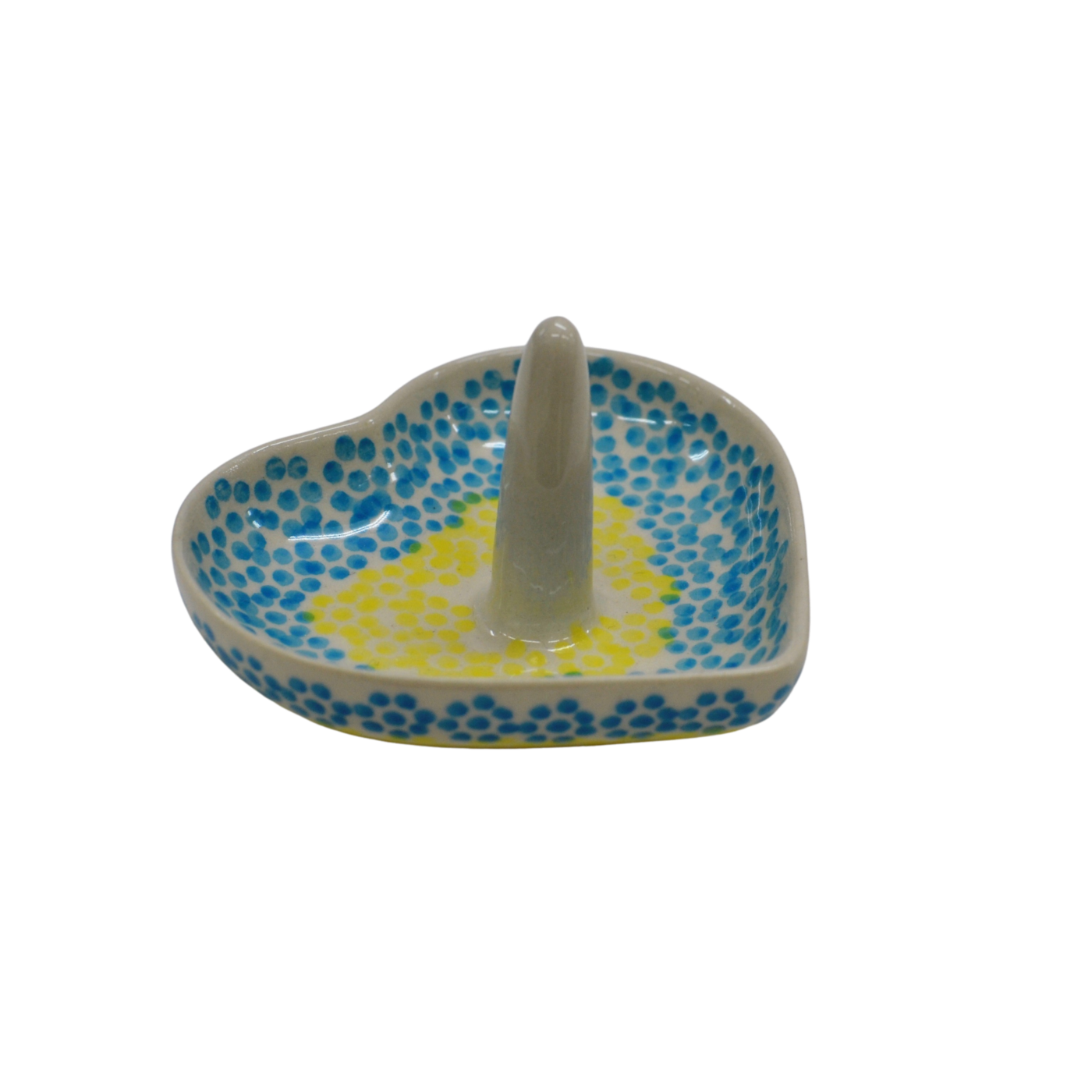 Ceramiczny stojak, podstawka na biżuterię w kształcie serca z trzpieniem. Wyrób ceramiczny dekoracyjny, ozdobionymi podszkliwnymi wzorami, prosto z Bolesławca, to oryginalny i nieoceniony wieszak/stojak dla kobiecych świecidełek. Rewelacyjnie wyglądający dodatek dekoracyjny a zarazem funkcjonalny kobiecej toaletki jak i łazienki, taki który pozwoli na zaprzestanie gubienia biżuterii w całym domu! Ahhh… skąd my to znamy! Dzięki szkliwieniu, jest bardzo łatwy w utrzymaniu czystości. Zawieszona na nim biżuteria taka jak, łańcuszki, kolczyki czy pierścionki będą zawsze pod ręką, ułożone w piękny sposób.