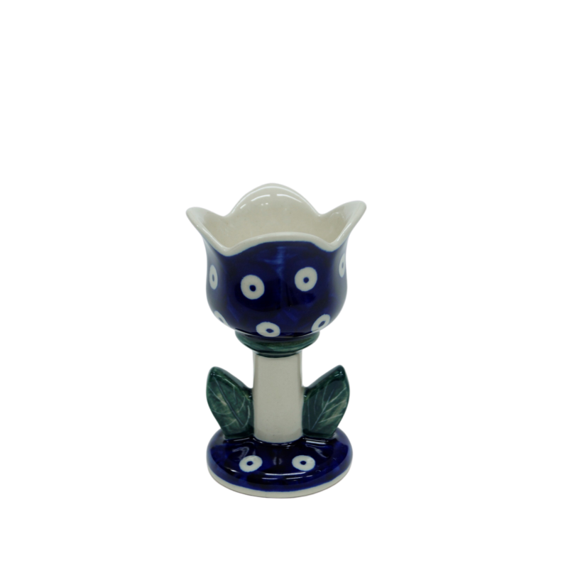 Ceramiczny świecznik w kształcie tulipana, oryginalny wyrób ceramiki użytkowej z Bolesławca. Świecznik tulipan może być używany z podgrzewaczem tealight bądź z tradycyjną świeczką stojącą stołową.