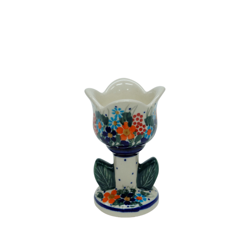 Ceramiczny świecznik w kształcie tulipana, oryginalny wyrób ceramiki użytkowej z Bolesławca. Świecznik tulipan może być używany z podgrzewaczem tealight bądź z tradycyjną świeczką stojącą stołową.