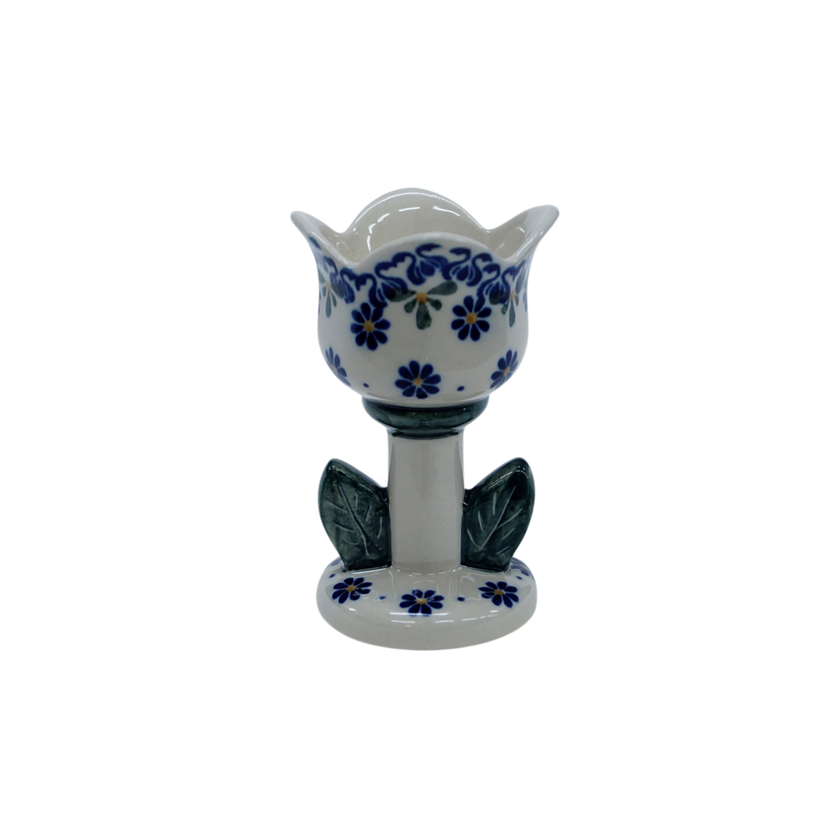 Ceramiczny świecznik w kształcie tulipana, oryginalny wyrób ceramiki użytkowej z Bolesławca. Świecznik tulipan może być używany z podgrzewaczem tealight bądź z tradycyjną świeczką stojącą stołową.