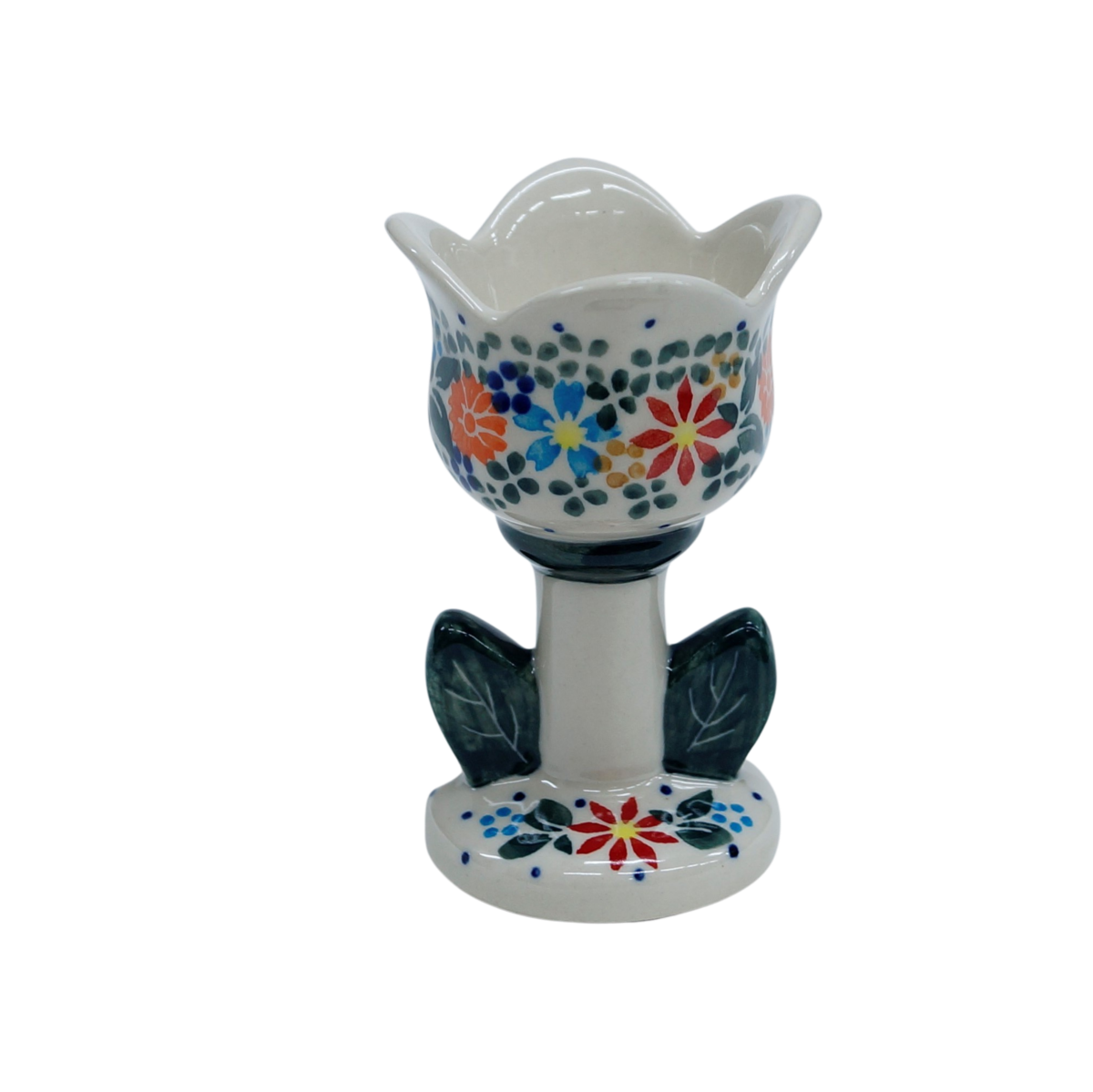 Ceramiczny świecznik w kształcie tulipana, oryginalny wyrób ceramiki użytkowej z Bolesławca. Świecznik tulipan może być używany z podgrzewaczem tealight bądź z tradycyjną świeczką stojącą stołową.