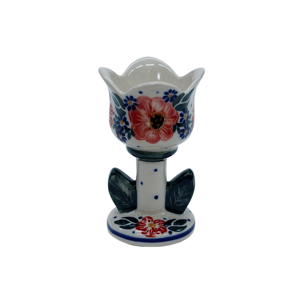 Ceramiczny świecznik w kształcie tulipana, oryginalny wyrób ceramiki użytkowej z Bolesławca. Świecznik tulipan może być używany z podgrzewaczem tealight bądź z tradycyjną świeczką stojącą stołową.