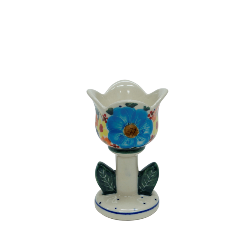 Ceramiczny świecznik w kształcie tulipana, oryginalny wyrób ceramiki użytkowej z Bolesławca. Świecznik tulipan może być używany z podgrzewaczem tealight bądź z tradycyjną świeczką stojącą stołową.